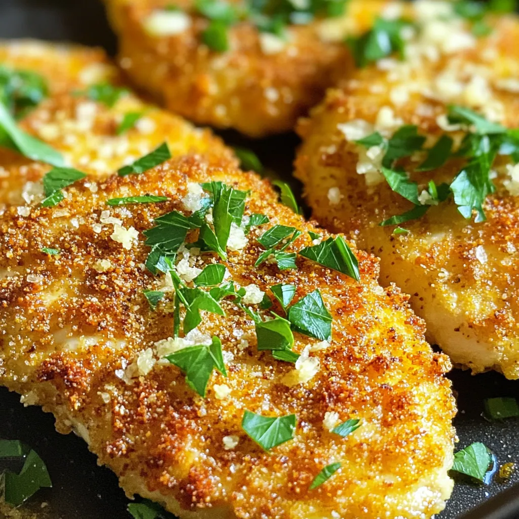 Place the coated cutlets in the air fryer basket in a single layer. Do not overcrowd them; this ensures they cook evenly. Air fry the cutlets for 10 to 12 minutes. Flip them halfway through to get a golden brown color on both sides. Check that the chicken reaches an internal temperature of 165°F (75°C). When they are done, take the cutlets out and let them rest for a few minutes. Garnish with fresh parsley for a pop of color and flavor.