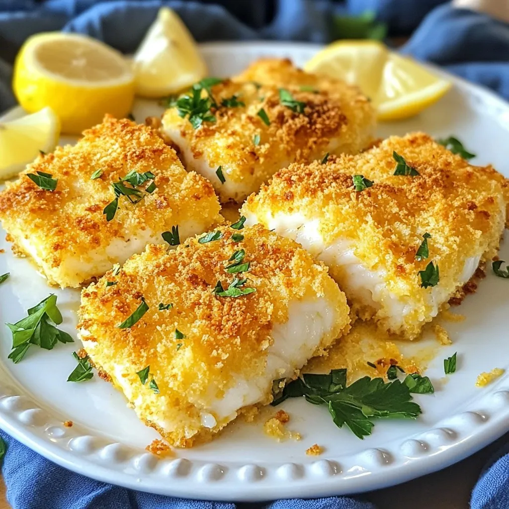 You need cod fillets as your main protein. Choose fillets that are around 6 ounces for even cooking. Panko breadcrumbs give a nice crunch. The Parmesan cheese adds a rich flavor. Fresh parsley brightens every bite.