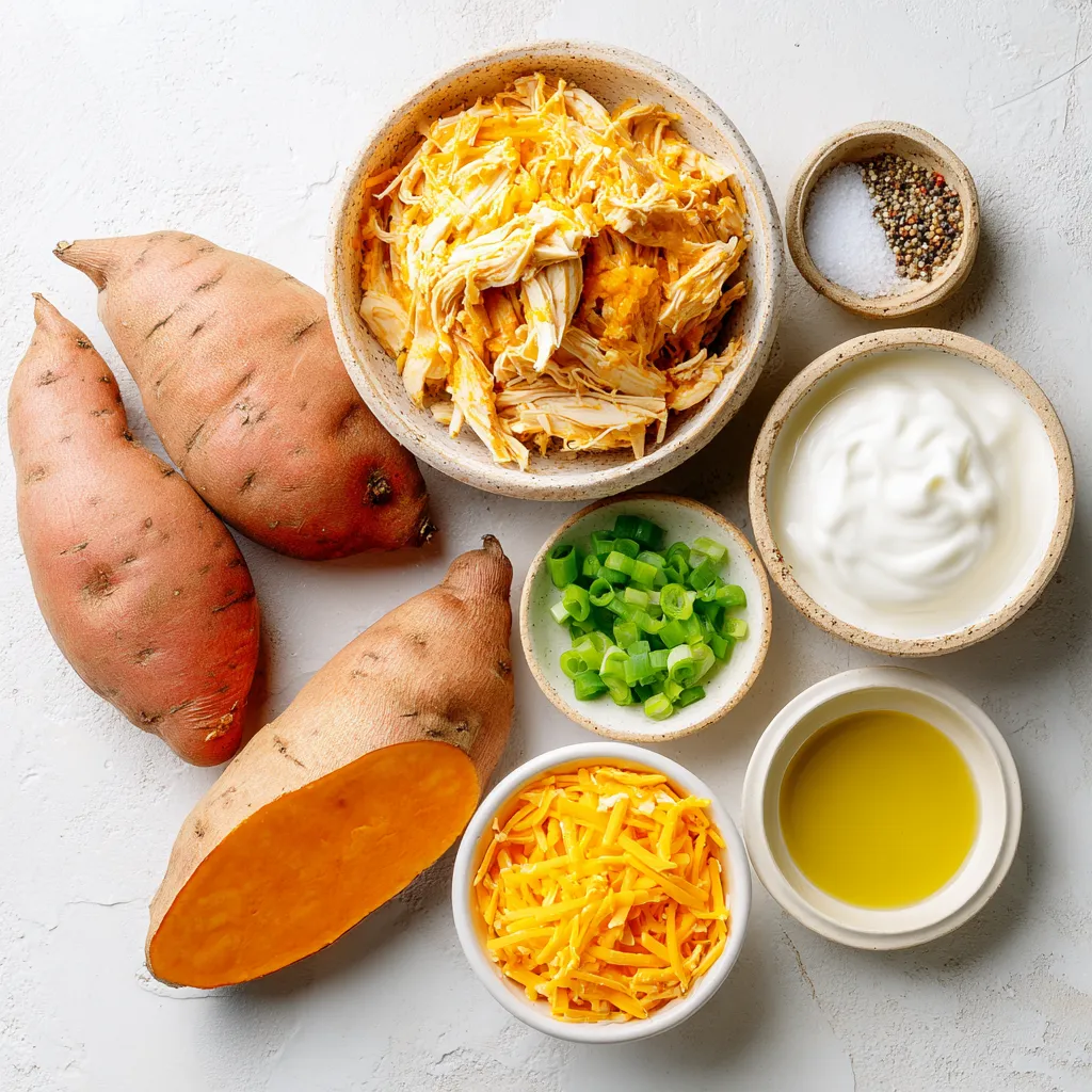 To make Buffalo Chicken Stuffed Sweet Potatoes, gather these simple items: