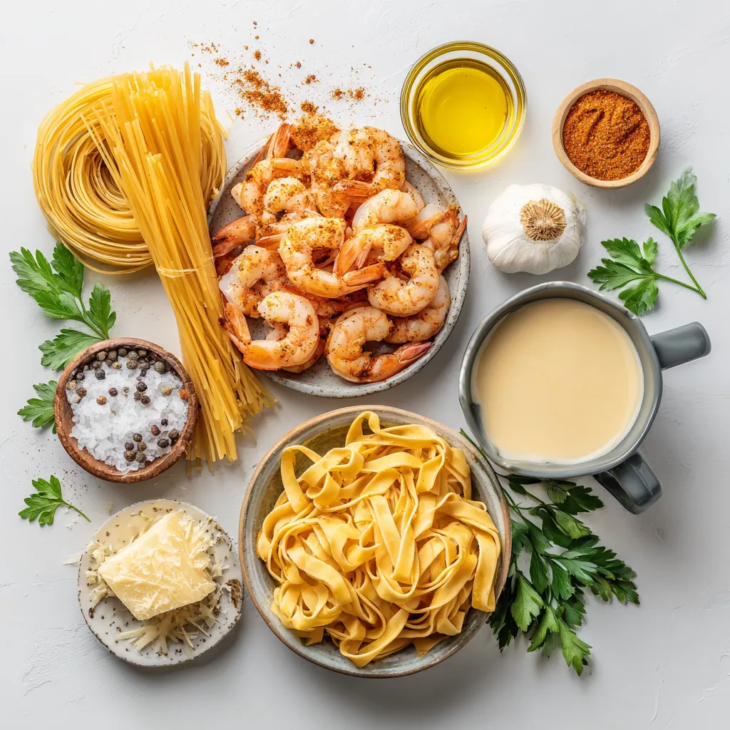 To create a tasty Cajun Shrimp Alfredo, gather the right ingredients. Start with 12 ounces of fettuccine pasta for a hearty base. You need one pound of large shrimp, already peeled and deveined. The Cajun seasoning brings heat and flavor, so use two tablespoons. For cooking, have three tablespoons of olive oil ready.