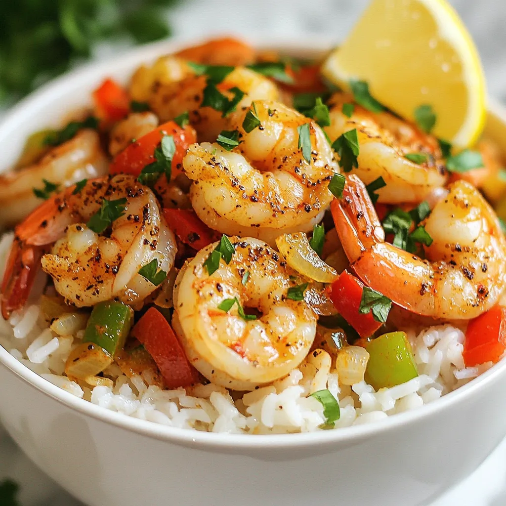 Serve in deep bowls to layer the rice at the bottom, topped with the vibrant shrimp and veggies. Add a lemon wedge on the side for an extra zing when served. Enjoy!