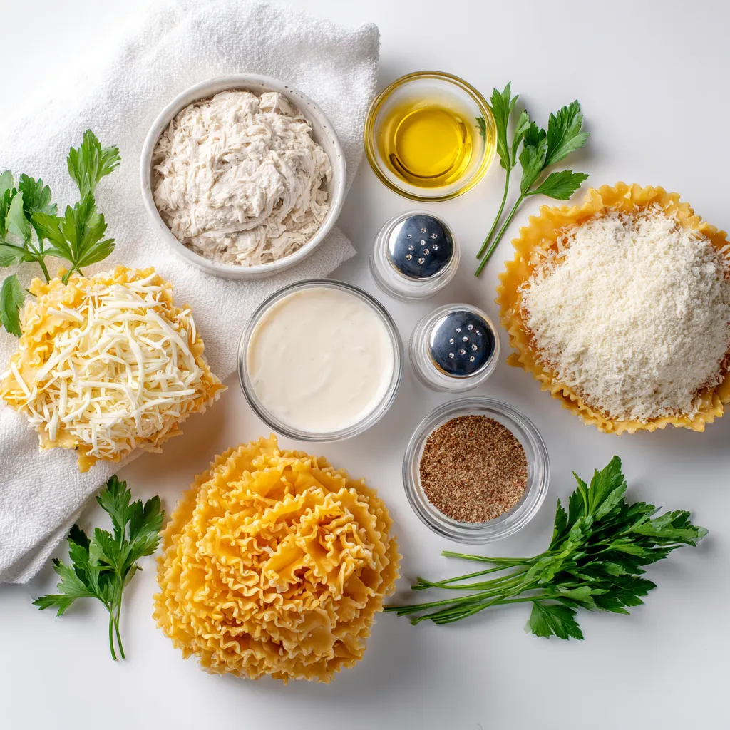 Each ingredient plays a key role. The lasagna noodles create the perfect wrap for the chicken. Shredded chicken gives a hearty bite. Ricotta adds creaminess, while mozzarella and Parmesan provide a cheesy layer. The Alfredo sauce ties everything together with its rich flavor. Garlic powder and Italian seasoning boost the taste. Don’t forget to season with salt and pepper. Lastly, fresh parsley adds a pop of color and freshness.