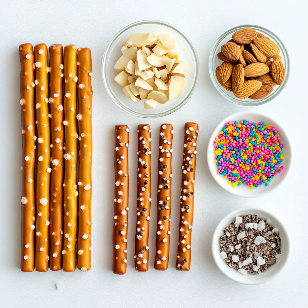 The main ingredients make this treat a delight. Pretzel rods serve as the base. They give a great crunch and saltiness. Semi-sweet chocolate chips bring a rich, sweet flavor. The coconut oil adds shine and helps the chocolate melt smoothly.