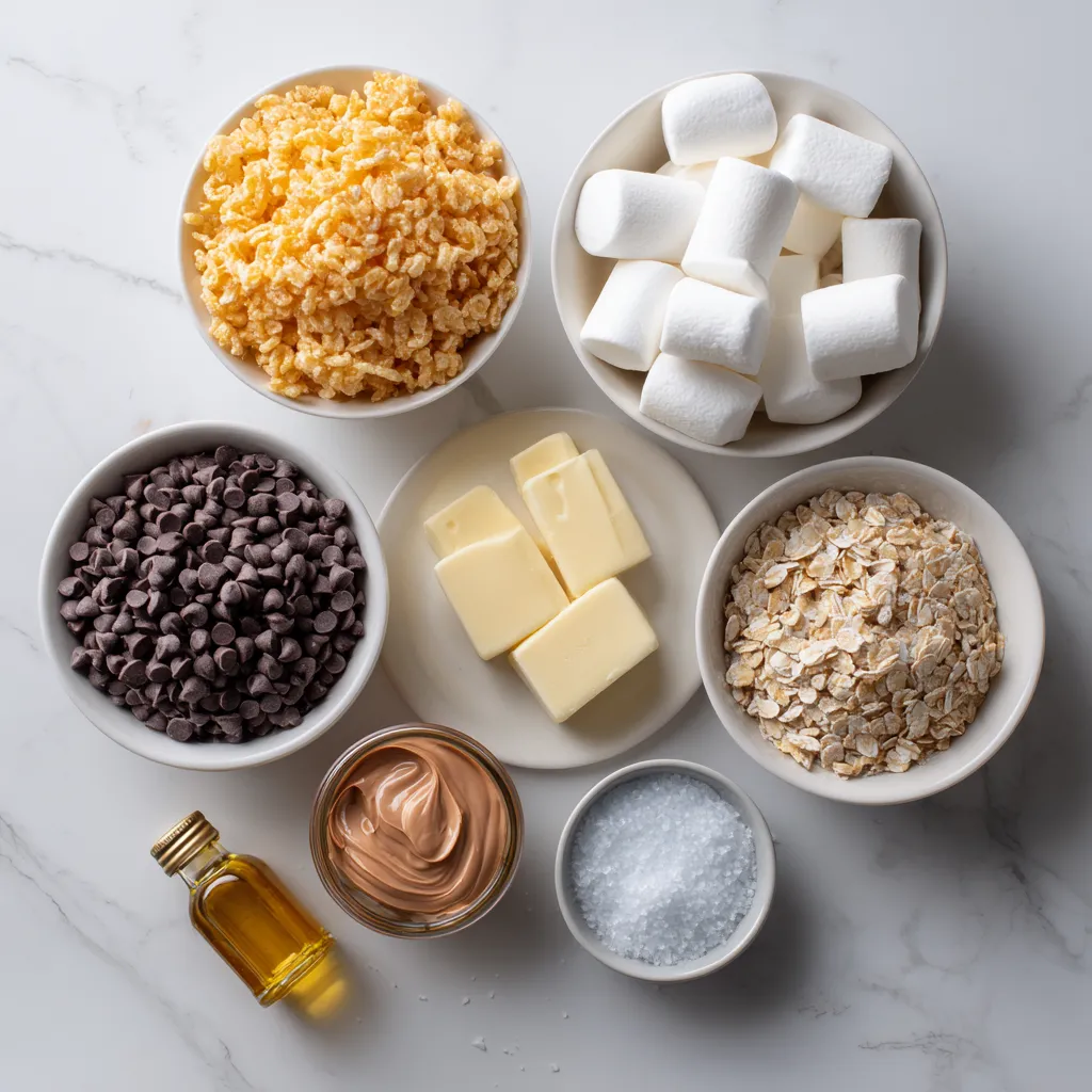 Gather all these ingredients before you start. Each one plays a key role. The Rice Krispies give the treats their crunch. The butter and marshmallows bind everything together. Peanut butter adds a rich, creamy layer. Vanilla gives a nice aroma and taste. The dark and milk chocolate will create a sweet, decadent finish. If you like a little salt, sprinkle some sea salt on top. This will balance the sweetness and add depth. Having everything ready makes the process smoother and more fun.