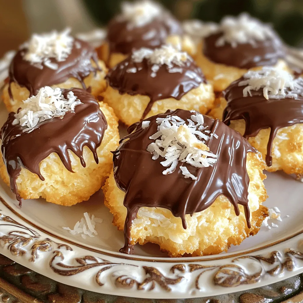 You can easily make vegan chocolate-dipped coconut macaroons by swapping a few ingredients. Instead of sweetened condensed milk, use a plant-based milk mixed with a thickener like cornstarch. This change keeps the rich flavor without using dairy. You can also replace the egg whites with aquafaba, the liquid from canned chickpeas. It whips up nicely and binds the macaroons well.