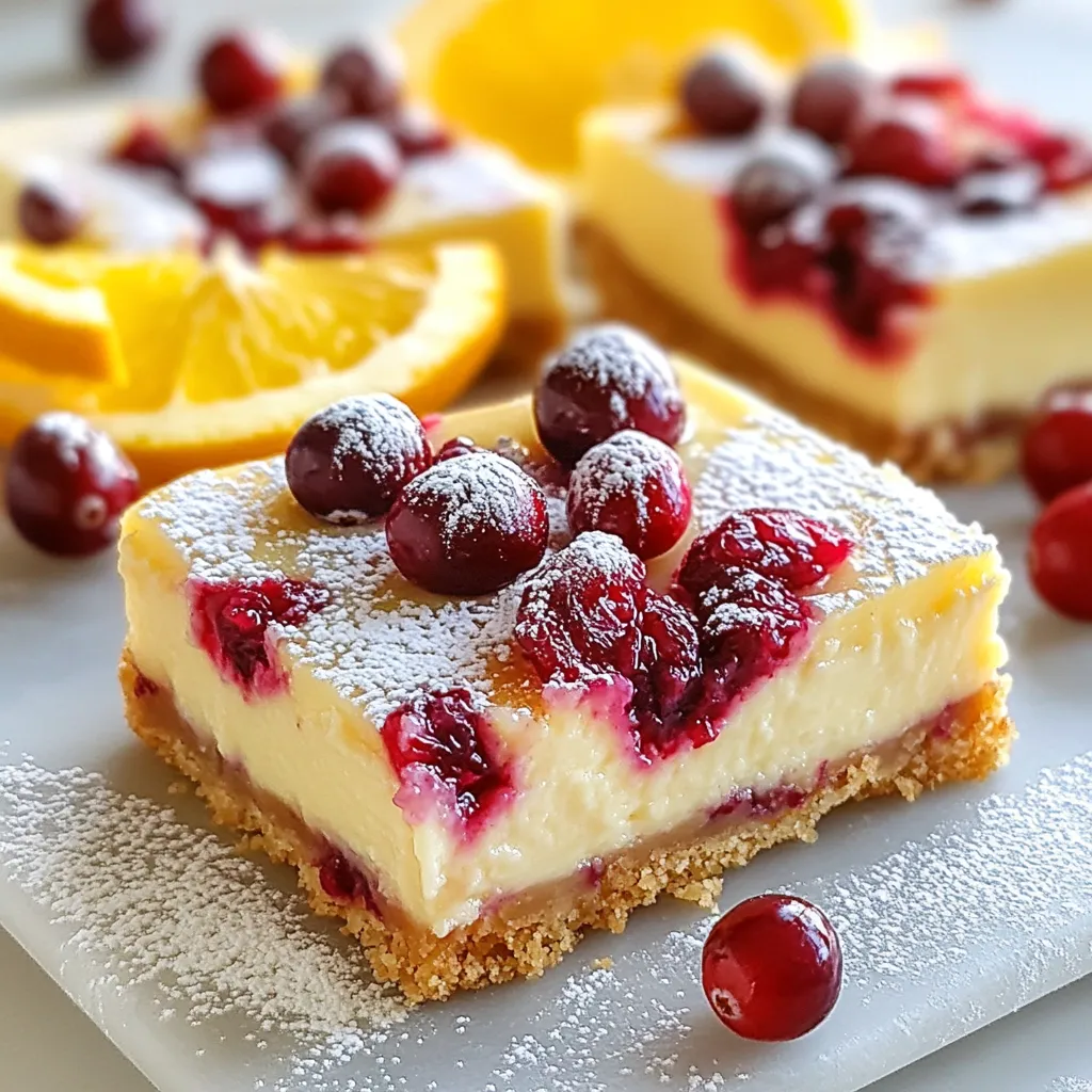 - Beautiful Presentation: With a simple dusting of powdered sugar and a garnish of orange slices and cranberries, these bars not only taste amazing but also look stunning on any dessert table.
