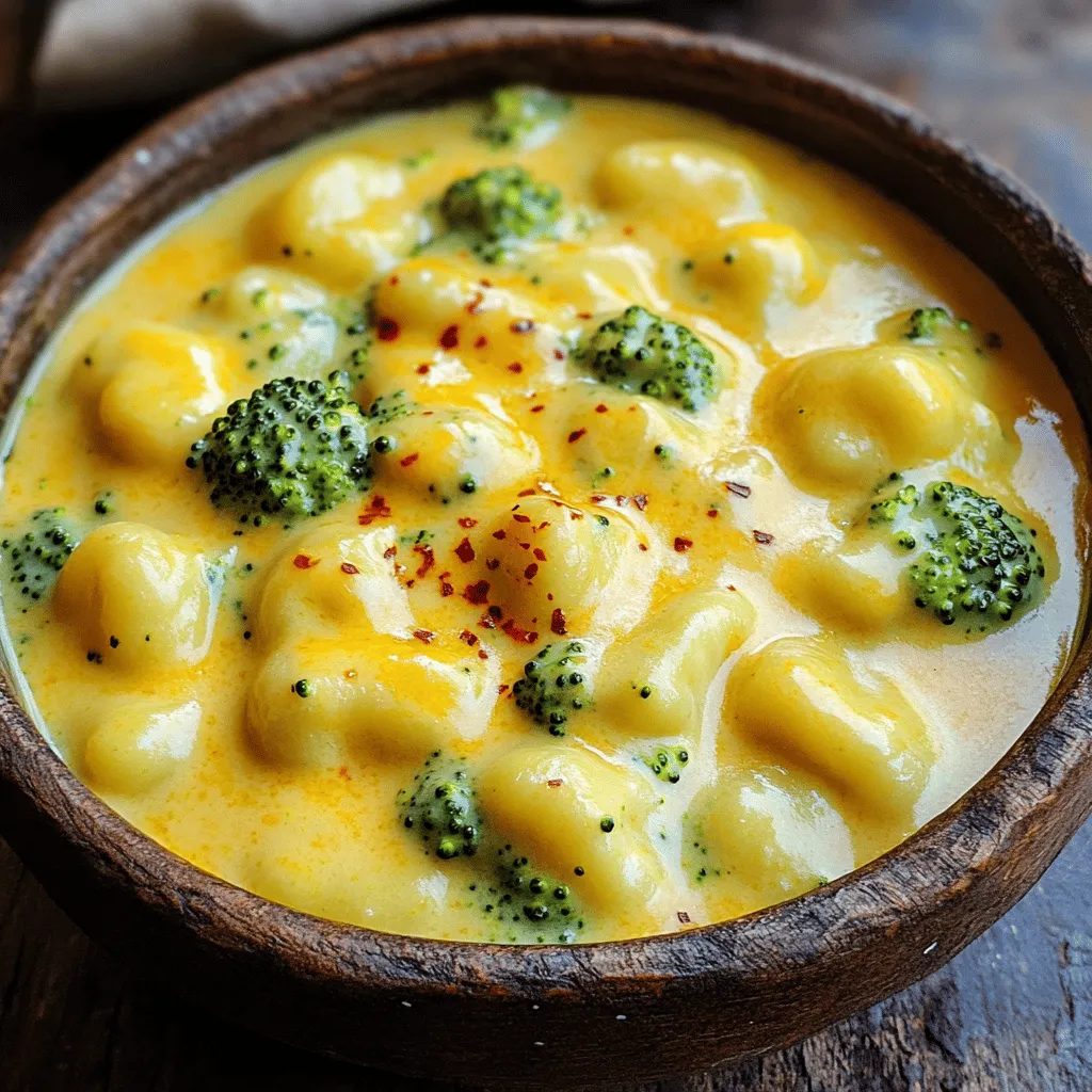 I love using potato gnocchi because it is soft and fluffy. It gives the dish a comforting feel. Fresh broccoli florets add bright color and nutrients. They also provide a nice crunch. Vegetable broth acts as a flavorful base. It ties all the ingredients together, making each bite taste great.