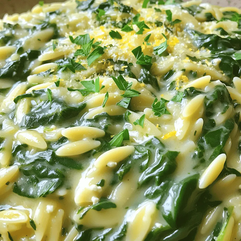 You can add fun ingredients to make Creamy Garlic Spinach Orzo even better. Try sun-dried tomatoes for a sweet twist. They add a rich flavor that pairs well with garlic. Artichokes are another great choice. They bring a lovely texture and taste to the dish.