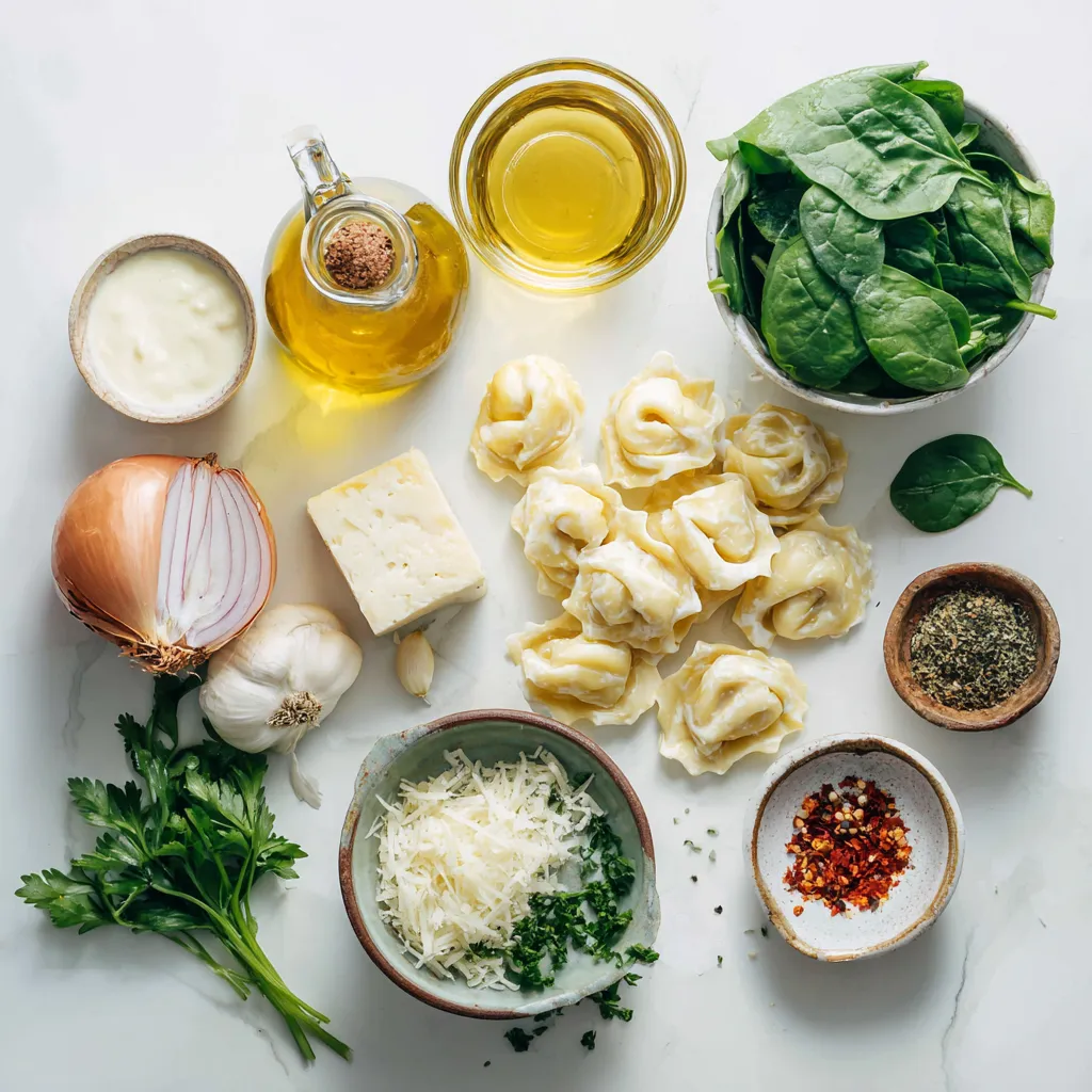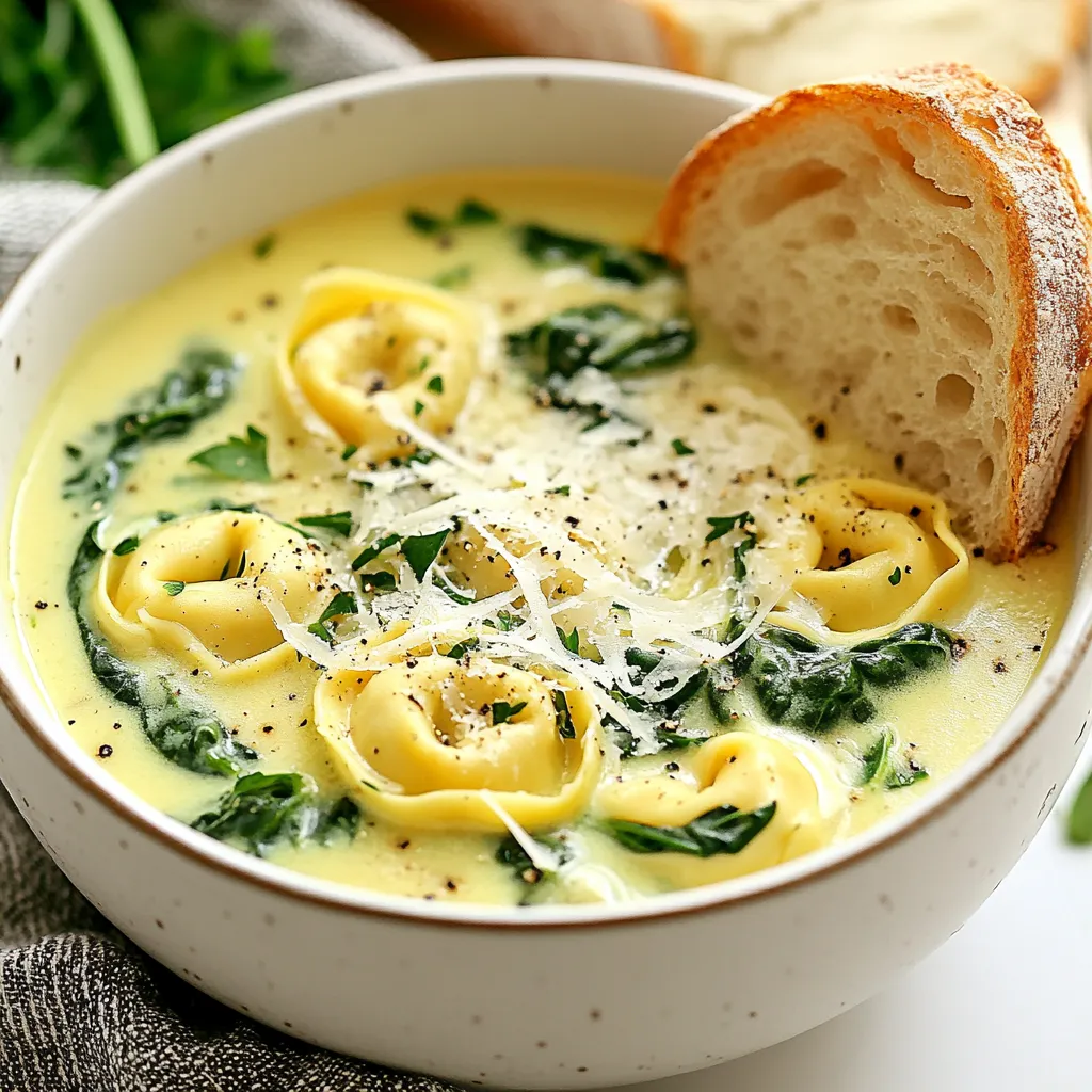 A comforting and creamy soup featuring cheese tortellini and fresh spinach.