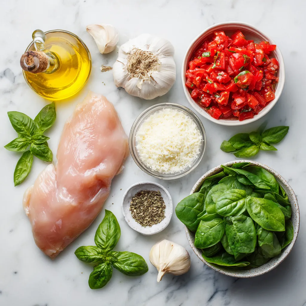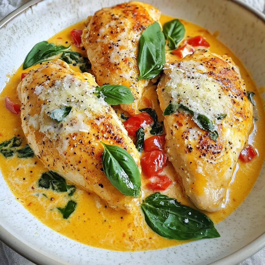 A delicious and creamy chicken dish with tomatoes and spinach, perfect for a comforting meal.