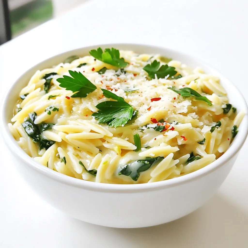 You can swap out the orzo for gluten-free pasta if needed. For a lighter version, use half and half instead of heavy cream. If you want a dairy-free option, try nutritional yeast for a cheesy flavor. Fresh spinach can be replaced with kale or arugula for a different twist.