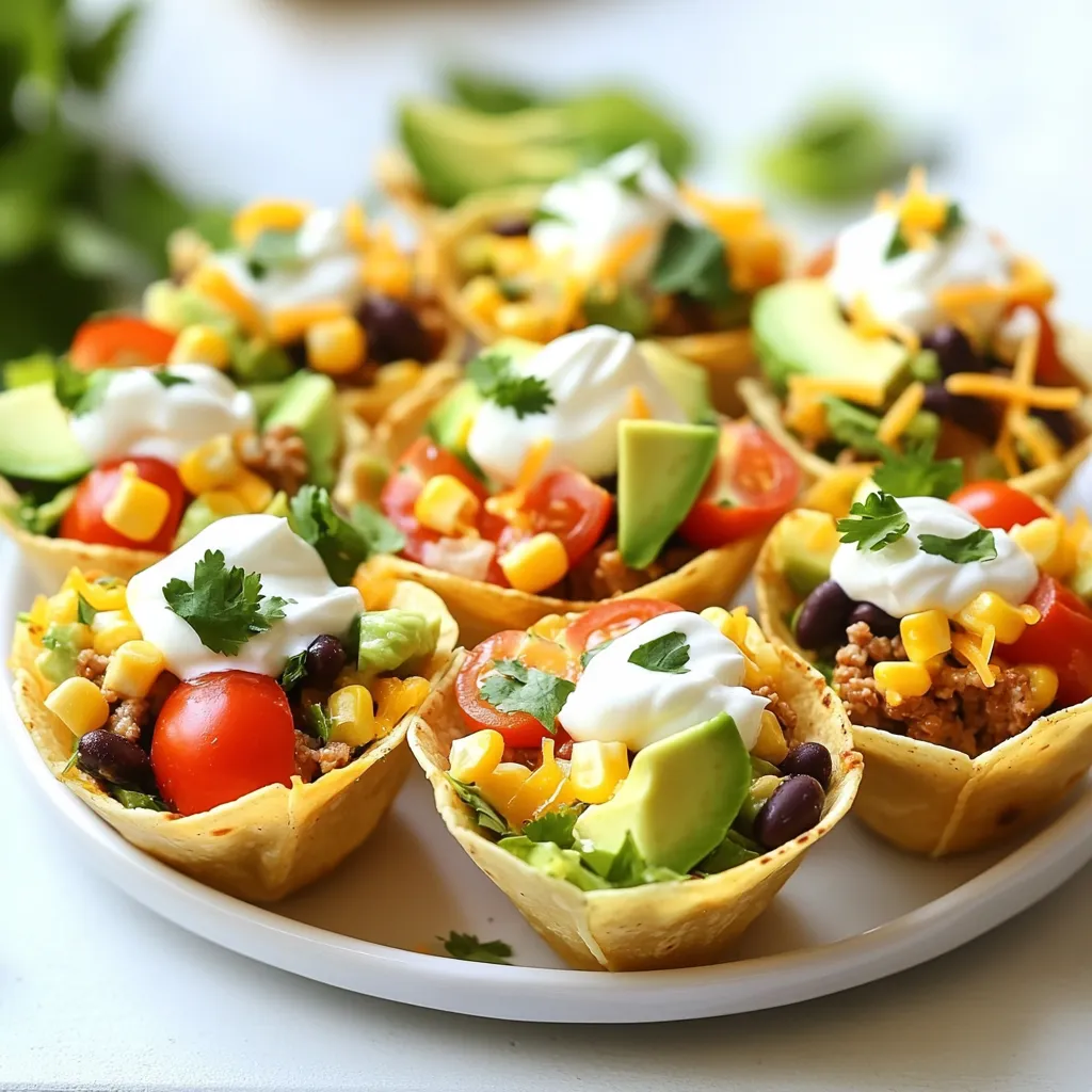 - Vibrant Presentation: Use a variety of colored vegetables for garnish to make your taco salad cups visually appealing.