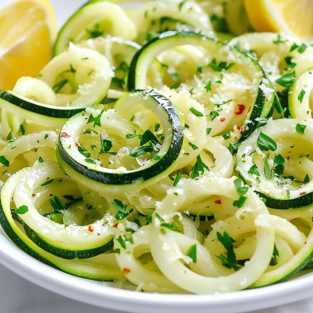 Plate the zucchini noodles in bowls, garnishing with freshly chopped parsley and serving with lemon wedges on the side for a bright finish.