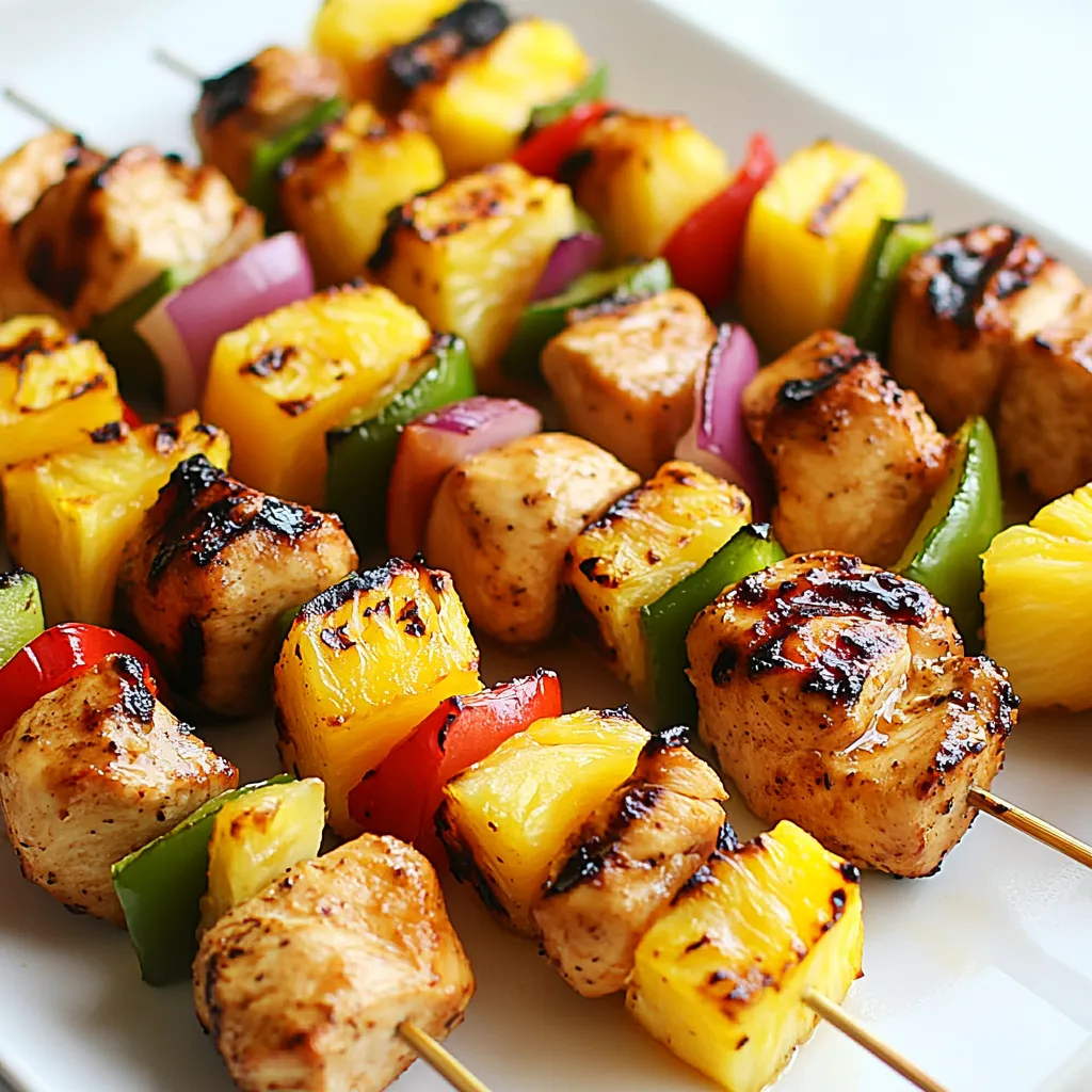 Delicious chicken kebabs with pineapple and bell peppers, grilled to perfection.