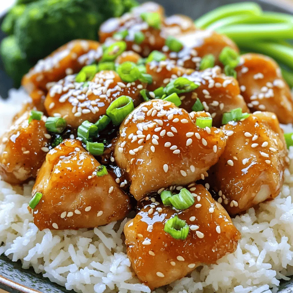 Cornstarch helps thicken the sauce, giving it a nice coat on the chicken. Vegetable oil is great for frying, ensuring the chicken gets crispy. Don’t forget the garnishes! Sesame seeds and green onions make the dish look pretty and add a bit of crunch.