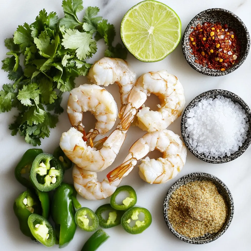 Each ingredient plays a key role in making this dish shine. The large shrimp deliver a juicy bite. Olive oil adds richness while helping the shrimp grill well. Fresh jalapeños bring heat and flavor. Garlic infuses a warm, savory touch. Lime juice and zest brighten the dish with acid and freshness. Ground cumin and chili powder enhance the flavor, bringing warmth and depth. Finally, salt and pepper balance everything out, while cilantro adds a fresh, herbal note as a garnish. Enjoy gathering these ingredients, as they set the stage for a flavorful meal.