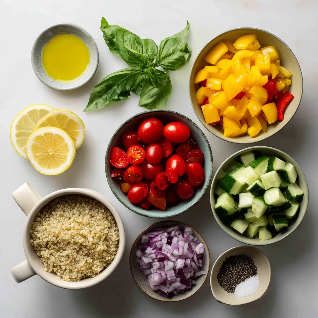 To make a tasty Lemon Basil Quinoa Salad, you need fresh and bright ingredients. Quinoa serves as the base. It brings a nutty flavor and fluffy texture. Rinse it well to remove any bitterness. Cook it in water or vegetable broth for added flavor.