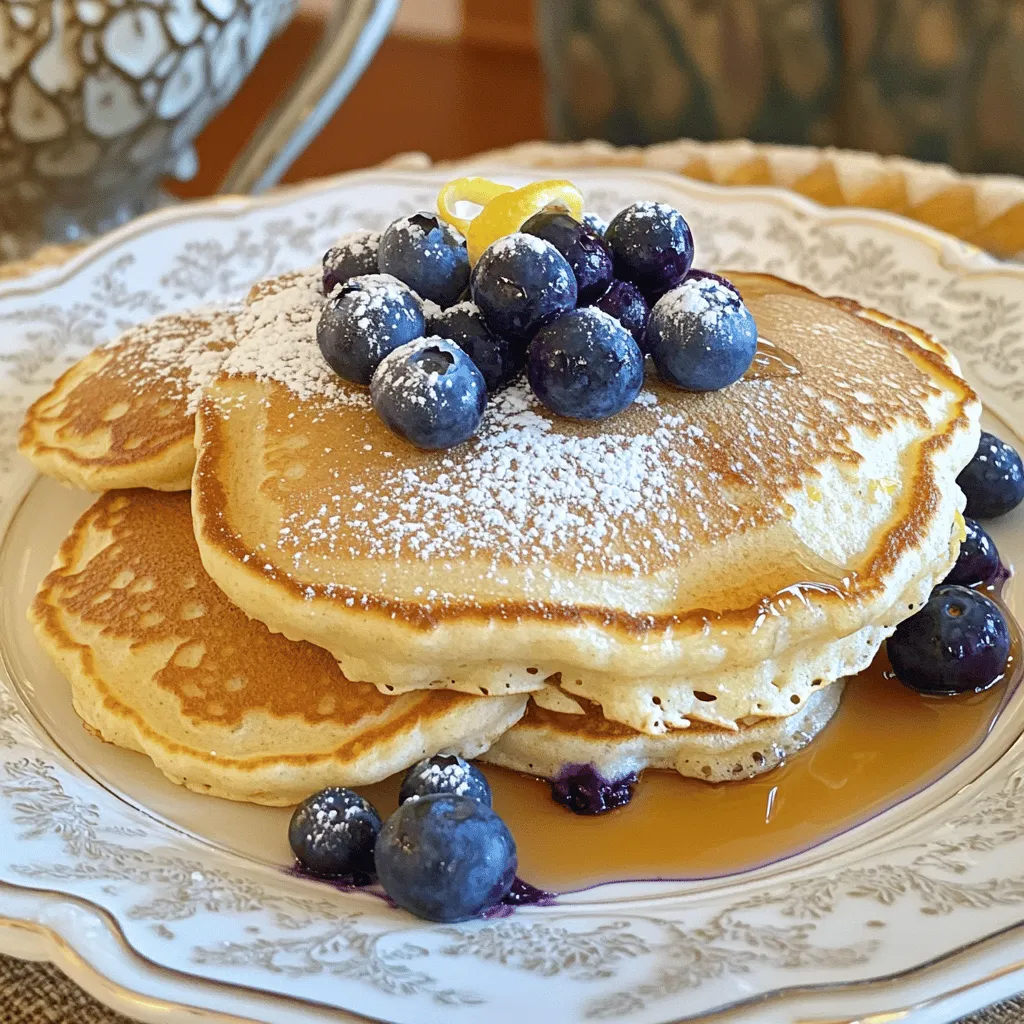 When I make Lemon Blueberry Ricotta Pancakes, I start with the main ingredients. Ricotta cheese gives the pancakes a creamy texture. Fresh blueberries add sweet bursts of flavor. All-purpose flour provides the base for this fluffy delight.