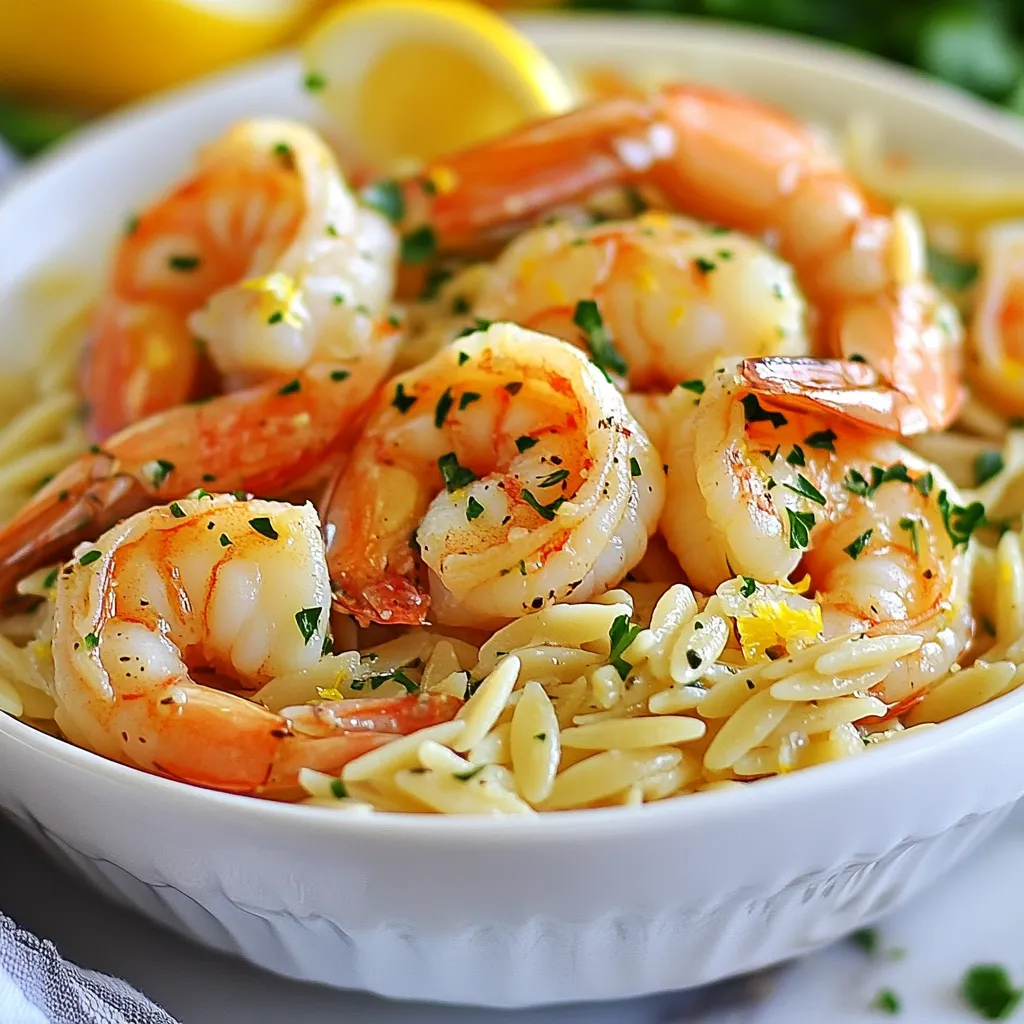 A bright and flavorful dish featuring shrimp and orzo pasta in a lemon garlic sauce.