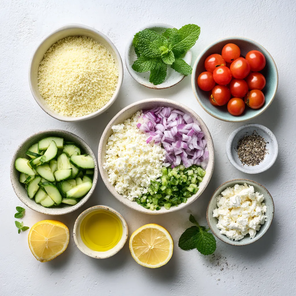 To make a tasty Lemon Herb Couscous Salad, you need fresh and simple ingredients. Each one adds flavor and texture. Here’s what you need: