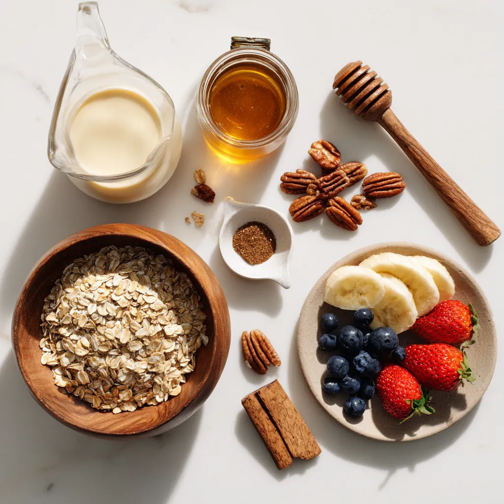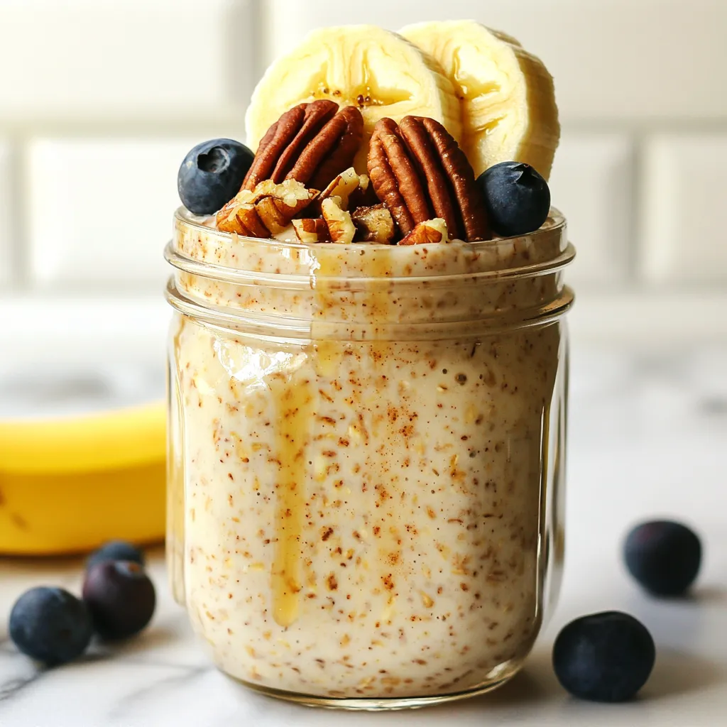 - 1 cup rolled oats - 2 cups almond milk (or any milk of choice) - 2 tablespoons pure maple syrup - 1/2 teaspoon vanilla extract - 1/4 teaspoon ground cinnamon - 1/2 cup pecans, roughly chopped - 1/2 banana, sliced (optional, for serving) - Fresh berries (strawberries, blueberries) for garnish - Pinch of salt You can easily change some ingredients to fit your taste. Use any milk you like, such as cow's milk or soy milk. If you want a different sweet taste, honey or agave syrup work well too. For a nut-free option, try sunflower seeds instead of pecans. You can also skip the banana if you prefer. Rolled oats are a great source of fiber. They help keep you full and support digestion. Almond milk is low in calories and has healthy fats. Maple syrup offers natural sweetness with some minerals. Pecans are high in healthy fats and antioxidants, making them great for heart health. Berries add vitamins and antioxidants, boosting your morning meal. {{ingredient_image_1}} To start, grab a medium mixing bowl. Add 1 cup of rolled oats to the bowl. Next, pour in 2 cups of almond milk. You can also use any milk you prefer. Then, add 2 tablespoons of pure maple syrup for sweetness. Don’t forget 1/2 teaspoon of vanilla extract. For a warm touch, sprinkle 1/4 teaspoon of ground cinnamon. Finally, add a pinch of salt. Stir the mixture well until everything blends. Now, fold in 1/2 cup of roughly chopped pecans. Make sure to save a few for topping later. Take two jars or airtight containers and divide the oat mixture evenly. Cover each jar tightly. This step keeps the oats fresh and flavorful. Place the jars in the fridge for at least 4 hours or overnight. This soaking time helps the oats absorb the milk and flavors. When you’re ready to eat, stir the oats again. Top with sliced banana and the reserved pecans. Don’t forget to add fresh berries for color and taste. Enjoy your delicious Maple Pecan Overnight Oats! To get the best texture, use rolled oats. They soak up liquid well, giving a creamy feel. Avoid instant oats; they can turn mushy. Use enough liquid too. The ratio of oats to milk should be 1:2. If you like it thicker, add less milk. If you prefer it creamier, add a splash more. You can boost the flavor with fun mix-ins. Try adding a spoonful of nut butter for richness. Dried fruits like raisins or cranberries add sweet bites. A sprinkle of cocoa powder gives a chocolate kick. If you love spice, add a dash of nutmeg or cardamom. Mix it up to keep each bite exciting! Store leftover oats in jars or airtight containers. Keep them in the fridge for up to three days. If they get too thick, stir in a bit of milk before eating. You can also freeze them in portions. Just thaw overnight in the fridge for an easy breakfast. Pro Tips Soak for Extra Creaminess: Allow the oats to soak for at least 8 hours for a creamier texture and better flavor absorption. Mix Up Your Nuts: Experiment with different nuts such as walnuts or almonds for a unique twist on flavor and texture. Sweeten to Taste: Adjust the amount of maple syrup based on your sweetness preference; you can also add a splash of agave or honey. Add a Protein Boost: Stir in a scoop of your favorite protein powder for an extra nutritional kick. {{image_2}} You can switch up the sweetener in your overnight oats. If you want less sugar, try using honey or agave syrup. You can also use stevia or monk fruit. These options add sweetness without too many calories. Each sweetener gives a unique flavor profile. Experiment to find what you like best. Pecans are great, but feel free to mix it up. Almonds, walnuts, or cashews can add different tastes and textures. Slice or chop them for easy mixing. Each nut gives a different crunch and flavor. You can also use nut butter for a creamier texture. Try peanut or almond butter for a tasty twist. Fruit can change the whole dish! In summer, use fresh berries like strawberries or blueberries. In the fall, try adding sliced apples or pears. Bananas work year-round and add great creaminess. You can also mix dried fruits, like raisins or cranberries. Each fruit adds its own flavor and nutrition. You can serve Maple Pecan Overnight Oats in many ways. For breakfast, a full jar works great. If you want a snack, half a jar is perfect. You can also make smaller portions for kids. This way, you keep it fun and easy. These oats are filling, so they give you a great start to your day. Think outside the box when choosing containers. Use mason jars for a rustic look. Clear cups let you show off the layers. Small bowls can work too. If you want to impress, try layering the oats with toppings. This makes it more fun to eat. You can even use a bento box for on-the-go meals. Pair your oats with tasty drinks. A hot cup of tea or coffee works well. For a refreshing option, try cold juice or almond milk. You can also add fresh fruit on the side. Sliced apples or oranges add a nice touch. If you want extra protein, serve them with Greek yogurt. This will keep you full and happy! Overnight oats can last in the fridge for about 3 to 5 days. I like to make a few jars at once. This way, I have a tasty breakfast ready to go. Just remember to keep them sealed tight. This keeps them fresh and flavorful. Yes, you can use quick oats. They cook faster and soak up liquid more quickly. However, they may become mushy. I recommend using rolled oats for a chewy texture. Rolled oats give that perfect bite, making your breakfast more enjoyable. For gluten-free oats, look for certified gluten-free rolled oats. You can also try quinoa flakes or chia seeds for a different texture. These options are great for adding variety to your breakfast. Always check labels to ensure they meet your dietary needs. This post covered the key ingredients for overnight oats and their health benefits. You learned how to prepare, assemble, and store your oats for the best texture. We explored fun flavors, variations, and serving ideas to spice things up. Remember, overnight oa
