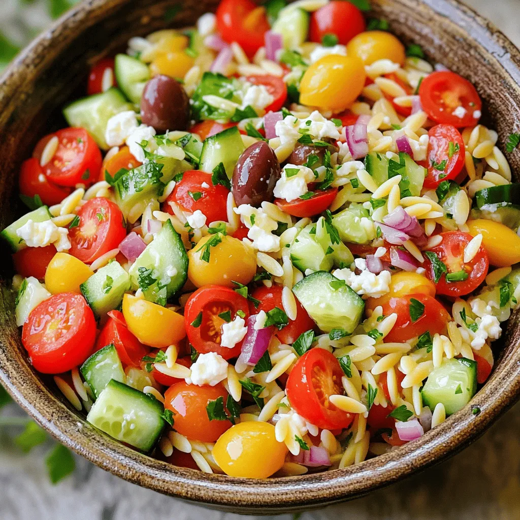 To make this salad gluten-free, use gluten-free orzo pasta. Many brands now offer this option, so you can still enjoy the same great taste. Just follow the same cooking instructions. You can also add some quinoa or rice if you like. These grains add a unique flavor and texture while keeping it gluten-free. This way, everyone can enjoy the Mediterranean vibes!