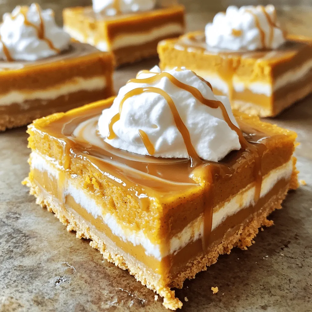 Make these bars even more special for the holidays. You can add cranberries for a festive touch. They give a sweet and tart flavor that complements the pumpkin. Another idea is to incorporate maple flavors. Swapping some caramel sauce for maple syrup creates a fall-themed dessert. Each of these variations makes the bars unique and seasonal.