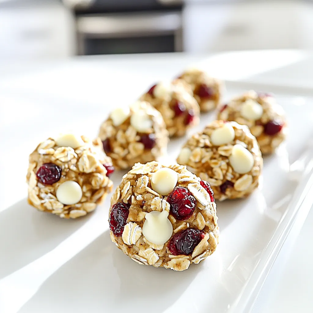 To make the best energy bites, start with fresh ingredients. Use creamy almond or peanut butter for a smooth texture. Honey adds sweetness and helps bind the mix. Mix the oats, nut butter, and honey first. This ensures a good base. Then, fold in the white chocolate chips and dried cranberries gently. This keeps the chips from breaking. Roll the mix into 1-inch balls. If the mix is too sticky, wet your hands slightly. Chill the bites for at least 30 minutes to firm them up.