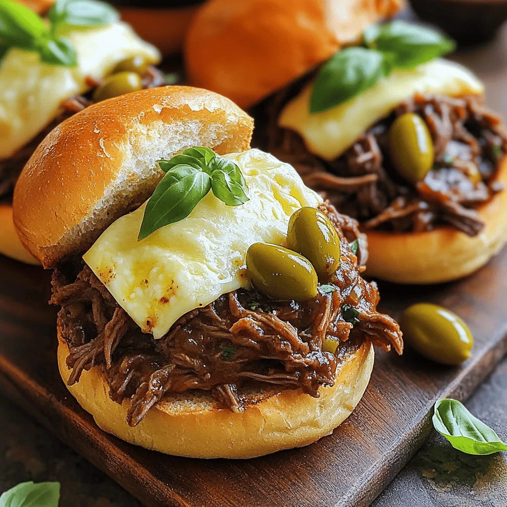 - 2 lbs beef roast (chuck or brisket) - 1 jar (16 oz) whole pepperoncini peppers, undrained - 1 onion, sliced - 4 cloves garlic, minced For these sliders, you need a good beef roast. Chuck or brisket works best. Chuck has rich flavor, while brisket is tender and juicy. Both types cook well in a slow cooker. You also need pepperoncini peppers. They add a tangy, spicy kick to the beef. Their juices mix with the beef, giving it a nice flavor. Don’t drain the jar; the liquid is key! Next, you need aromatics: onion and garlic. They give depth to the dish. Slice the onion and mince the garlic. They will release their flavors while cooking. - 1 teaspoon dried oregano - 1 teaspoon Italian seasoning - 1 teaspoon black pepper - 1 teaspoon salt - Provolone cheese slices (optional) - Fresh basil leaves for garnish Seasonings make this dish shine. Dried oregano and Italian seasoning give it an authentic taste. Add salt and black pepper to enhance the flavors. Taste as you go to find your perfect balance. Provolone cheese is optional but delicious. It melts perfectly over the beef. Fresh basil adds a pop of color and fresh taste. Sprinkle some on top right before serving. - 12 slider buns - Types of buns to use - Toasting tips You need slider buns to hold this tasty filling. Soft, fluffy buns work best. Look for ones labeled as "slider" or "mini." Toasting the buns is key. Preheat your oven to 350°F (175°C). Split the buns and place them on a baking sheet. Toast them for about 5 minutes. This keeps them from getting soggy. Plus, it adds a nice crunch! To start, layer the beef roast in your slow cooker. Place it in the bottom. Next, add sliced onion and minced garlic on top. Sprinkle dried oregano, Italian seasoning, black pepper, and salt over the meat. Why should you season immediately? Seasoning right away helps the flavors blend well as the beef cooks. The spices soak into the meat, making every bite tasty. Now, let’s talk about cooking. You can choose between low and high settings on your slow cooker. Cooking on low takes about 8 hours. It gives the best flavor and tenderness. On the high setting, it takes around 4 hours. This is great if you are short on time, but the beef may not be as tender. Always check for tenderness; it should shred easily when done. After cooking, remove the beef from the slow cooker. Use two forks to shred the beef into small pieces. This technique works best and is simple. Once shredded, return the beef to the slow cooker. Mix it well with the pepperoncini and sauce. This ensures every bite is full of flavor. While the beef cools a bit, let’s toast the buns. Preheat your oven to 350°F. Split each slider bun and lay them on a baking sheet. Toast them for about 5 minutes. You want them to be lightly golden. This step adds a nice crunch and helps hold the beef. Now it's time to make the sliders. Take a toasted bun and add a generous spoonful of the beef mixture. If you like cheese, place a slice of provolone on top. Garnish with fresh basil leaves for a pop of color and flavor. Place the top half of the bun on the slider, and you're ready to serve! To get the best beef for your sliders, choose cuts like chuck or brisket. These cuts are full of flavor and become very tender when cooked slowly. Look for meat with good marbling. This fat keeps the beef juicy. For maximum tenderness, cook your beef low and slow. A slow cooker works great for this. Cook on low for eight hours or high for four hours. The beef should shred easily with a fork when it’s ready. To boost flavor, consider adding extra spices. You can try red pepper flakes for heat or smoked paprika for depth. Fresh herbs like thyme or rosemary also work well. Marinating your beef overnight can make a big difference. Use a mix of pepperoncini juice, garlic, and seasoning. This adds flavor right into the meat. For sides, crispy potato chips or a fresh salad pair nicely with the sliders. You can also serve coleslaw for a crunchy contrast. When it comes to drinks, consider light beers or a fruity soda. They balance the richness of the beef. For a great presentation, serve the sliders on a wooden board. Add a bowl of extra pepperoncini for guests. A sprinkle of fresh basil on top adds a nice touch and bright color. {{image_2}} To give your sliders a kick, add jalapeños or spicy cheese. - Jalapeños: Slice fresh jalapeños and mix them into the beef. You can add them when cooking or top your sliders with pickled jalapeños for crunch. - Spicy Cheese: Use pepper jack cheese instead of provolone. This cheese melts well and adds a nice heat. These spicy twists will make your sliders stand out! If provolone isn't your thing, try these cheese options: - Mozzarella: For a milder taste, mozzarella works great. It melts nicely and adds creaminess. - Cheddar: Sharp cheddar gives a nice flavor boost. It pairs well with the beef and pepperoncini. - Goat Cheese: For a tangy option, goat cheese is unique. Spread it on the bun before adding the beef. Experiment with different cheeses to find your favorite! For a gluten-free meal, swap regular buns for these alternatives: - Lettuce Wraps: Use large lettuce leaves as a wrap. They add crunch and freshness. - Gluten-Free Buns: Look for gluten-free slider buns at the store. They come in various flavors. - Sweet Potatoes: Slice sweet potatoes into rounds and bake them. Use them as a base for your beef. These options let everyone enjoy the sliders without worry! To store leftovers, place the sliders in an airtight container. This keeps them fresh and tasty. You can refrigerate them for up to three days. After that, the beef may lose its great flavor and texture. Always let the sliders cool before sealing them in the fridge. This helps avoid extra moisture, which can make them soggy. To freeze the sliders, first, let them cool completely. Then, wrap each slider tightly in plastic wrap. Place the wrapped sliders in a freezer bag for extra protection. They can last in the freezer for up