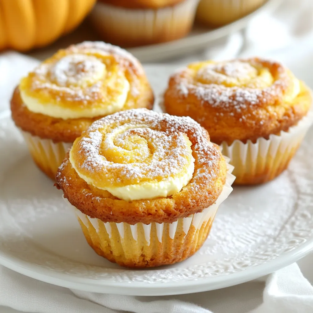 Deliciously moist muffins filled with pumpkin and a creamy cheese center, perfect for fall.
