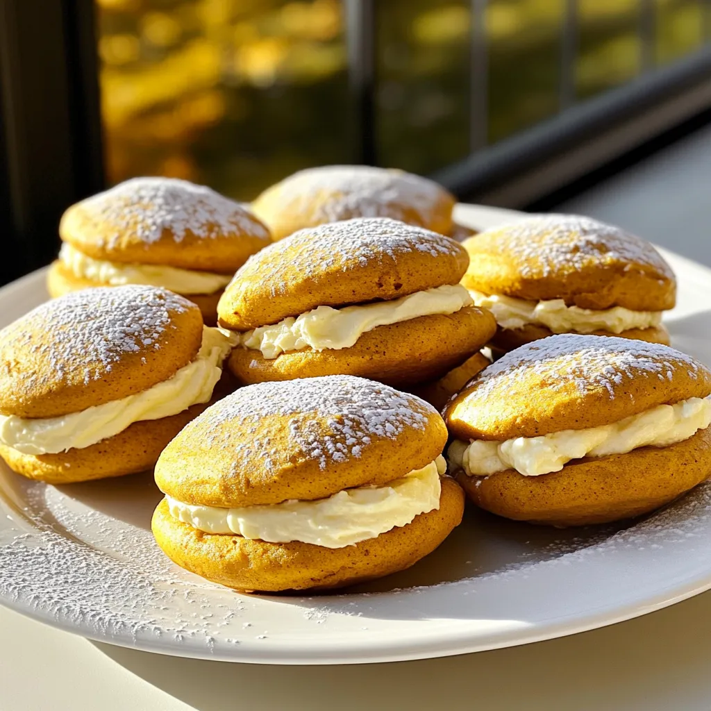 Serve your pumpkin whoopie pies on a festive platter. Dust them with powdered sugar for a charming look. You can add autumn leaves or small pumpkins to your display for extra flair. They are great at room temperature and perfect for sharing.
