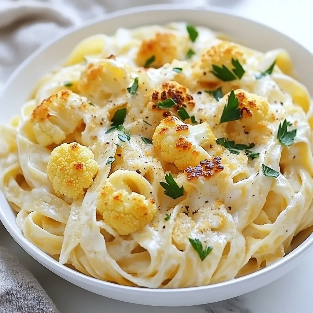 - 1 large head of cauliflower, cut into florets - 3 tablespoons olive oil - 8 ounces fettuccine or your preferred pasta - 2 cups vegetable broth - 1 cup unsweetened almond milk (or any non-dairy milk) - 3 cloves garlic, minced - 1 tablespoon nutritional yeast (optional, for a cheesy flavor) - 1 teaspoon garlic powder - 1 teaspoon onion powder - 1 tablespoon lemon juice - Salt and pepper to taste - Fresh parsley, chopped - Nutritional yeast (optional) - Lemon juice Gather these ingredients before you start. They create a warm, creamy dish that comforts the soul. I love how the roasted cauliflower adds depth and flavor. The olive oil helps the cauliflower roast to a golden perfection. Choose your favorite pasta, like fettuccine, for a delightful base. The vegetable broth and almond milk blend into a creamy sauce. Garlic adds a nice kick, while nutritional yeast brings a cheesy taste. Don't forget the spices for extra flavor. Fresh parsley brightens the dish, making it look as good as it tastes. This simple list makes it easy to create a cozy meal. Enjoy cooking! {{ingredient_image_1}} First, preheat your oven to 425°F (220°C). This high temperature helps the cauliflower get nice and golden. Next, take your cauliflower and cut it into small florets. On a baking sheet, toss the florets with 2 tablespoons of olive oil, salt, and pepper. Make sure they are coated well. Roast the cauliflower in the oven for 20 to 25 minutes. Flip them halfway through for even cooking. They should be tender and slightly browned. While the cauliflower roasts, fill a large pot with water. Bring it to a boil over high heat. Once boiling, add your fettuccine or any pasta you like. Cook the pasta according to the package instructions until it is al dente. This usually takes around 8 to 10 minutes. Before draining, reserve 1 cup of the pasta cooking water. This water will help make the sauce creamy later. Drain the pasta and set it aside. In a blender, combine the roasted cauliflower, vegetable broth, almond milk, minced garlic, nutritional yeast, garlic powder, onion powder, and lemon juice. Blend everything until it is smooth and creamy. If the sauce is too thick, add some of the reserved pasta water. Blend again until you reach the desired consistency. Taste the sauce and add more salt and pepper if you like. In the same pot you used for the pasta, combine the cooked fettuccine with the cauliflower Alfredo sauce. Stir well to coat the pasta evenly. Heat everything over low heat for a couple of minutes. If the sauce is too thick, add more pasta water until it’s nice and creamy. Serve the pasta warm in a large bowl or on individual plates. For a pop of color, garnish with freshly chopped parsley. You can also sprinkle extra nutritional yeast or cracked pepper on top for added flavor. A drizzle of olive oil can give it a nice finishing touch. Enjoy your comforting and delicious meal! To roast cauliflower well, start with a hot oven at 425°F (220°C). This high temperature helps the florets brown and get crispy. Roast for 20 to 25 minutes. Flip halfway to get even browning. Look for a golden color and a tender bite. This gives great flavor and texture. To make a creamier sauce, add more almond milk or reserved pasta water. Blend until smooth. If it feels too thick, a splash of water can help. Taste your sauce for flavor. A bit of salt or pepper can enhance it. Nutritional yeast adds a cheesy taste. For gluten-free options, try brown rice pasta or quinoa pasta. These cook a bit differently. Follow the package instructions for timing. Whole grain pasta is a healthy choice, too. It may take a few extra minutes to cook, but it's worth it. Always reserve some pasta water for the sauce! Pro Tips Roasting for Flavor: Make sure to roast the cauliflower until it's golden brown. This enhances the flavor of the Alfredo sauce, giving it a deeper, more complex taste. Adjust Consistency: If the Alfredo sauce is too thick, gradually add the reserved pasta water until you reach your desired creaminess. This will help the sauce cling better to the pasta. Seasoning is Key: Don’t forget to taste your sauce before serving. Adjust the seasoning with more salt, pepper, or lemon juice to brighten the flavors. Garnish for Appeal: Adding freshly chopped parsley not only adds color but also a fresh flavor that complements the creamy sauce beautifully. {{image_2}} You can make your own nut-based cheese. Blend soaked cashews with lemon juice and nutritional yeast. This gives a creamy and cheesy flavor. You can also find store-bought vegan cheese. Many brands offer tasty options. Look for ones that melt well for a great texture. To make this dish heartier, add protein. Chickpeas or lentils are great choices. They add fiber and taste. Simply stir them in with the pasta and sauce. You can also use tofu or tempeh. Cube and sauté them first for extra flavor. Then mix them into your pasta for a filling meal. Change up the veggies based on what’s fresh. In spring, try peas or asparagus. In summer, add zucchini or bell peppers. In fall, roasted pumpkin or kale works well. Fresh herbs enhance the taste too. Basil, thyme, or parsley can brighten the dish. Just sprinkle them on before serving for a pop of flavor. To keep your Roasted Cauliflower Alfredo Pasta fresh, store it in the fridge. Use an airtight container for best results. Make sure to cool the pasta before sealing it. This helps lock in flavor and prevents sogginess. Try to eat it within three days for the best taste. When you’re ready to enjoy leftovers, reheat them gently. The best method is on the stove. Add a splash of almond milk or vegetable broth to keep the sauce creamy. Heat over low flame, stirring often. This helps the pasta regain its texture. You can also use a microwave. Heat in short bursts, stirring in between, to prevent hot spots. If you want to save some for later, freezing is a great choice. Portion your pasta into small containers. This way, you can thaw only what