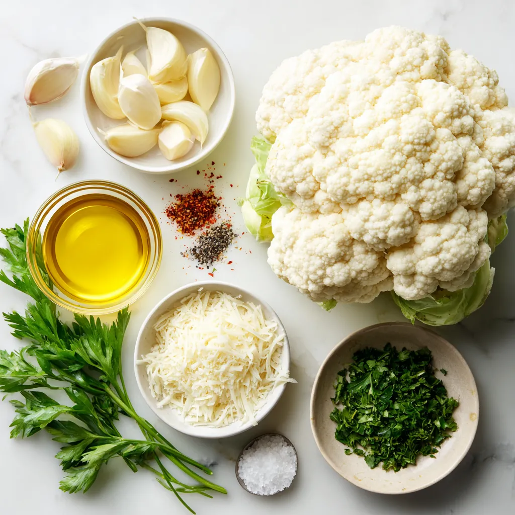 To make Roasted Garlic Parmesan Cauliflower, you need just a few key items: