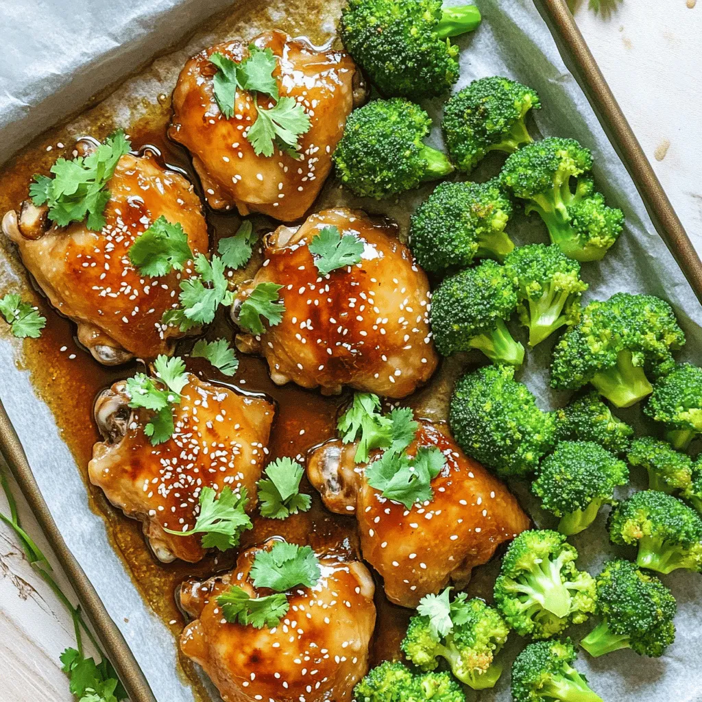 The main star of this dish is the chicken thighs. They are juicy and tender, making them perfect for roasting. Broccoli florets add a nice crunch and bright color to the meal. For the marinade, we mix together simple yet flavorful ingredients that bring everything to life.