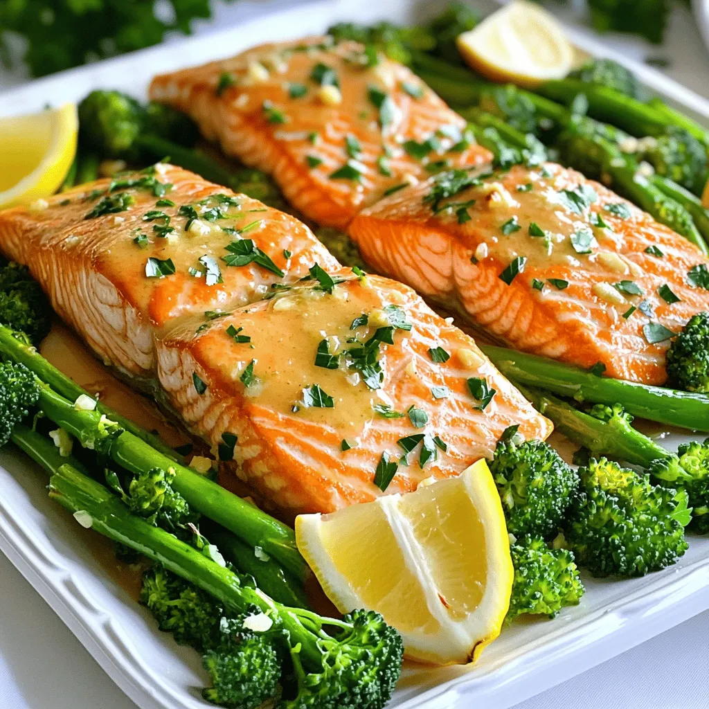 Plating is key to making your dish look great. Place the salmon and broccolini on a white platter. This makes the colors pop. Add lemon wedges for a bright touch. A sprinkle of fresh parsley adds a nice green contrast. Arrange everything neatly for an appealing look. Serve it hot for the best experience.