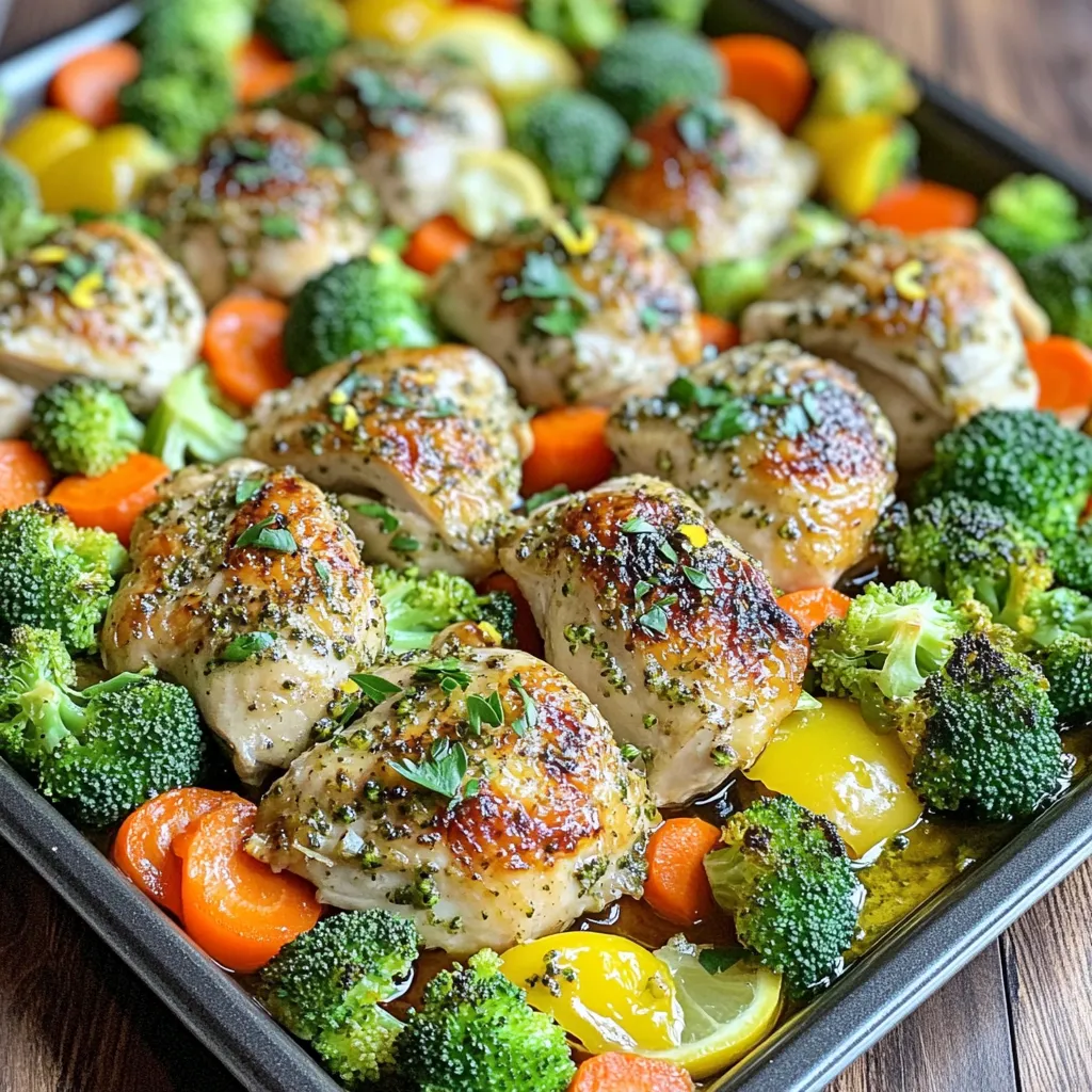 – Serve the chicken and veggies on a large platter. Drizzle any remaining juice from the pan over the top for added flavor. Garnish with fresh herbs and lemon slices for a vibrant look.