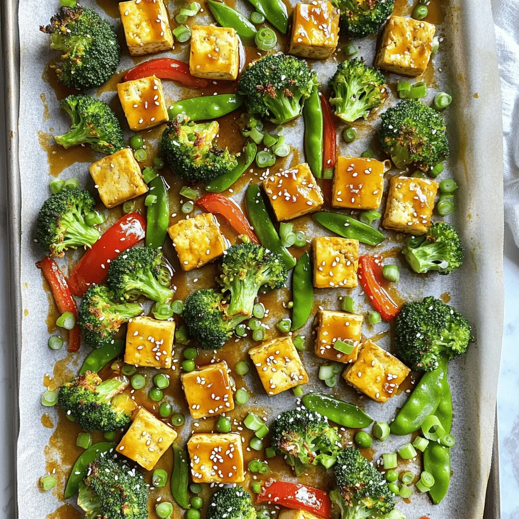 Baking tofu and veggies on a sheet pan is easy. To get the best results, stir and flip the mixture halfway through cooking. This helps everything cook evenly. You want the tofu and vegetables to brown nicely.