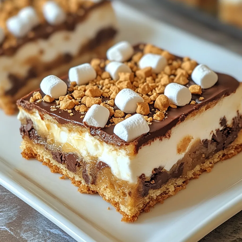 Delicious cookie bars combining chocolate, marshmallows, and graham crackers for a classic s'mores flavor.