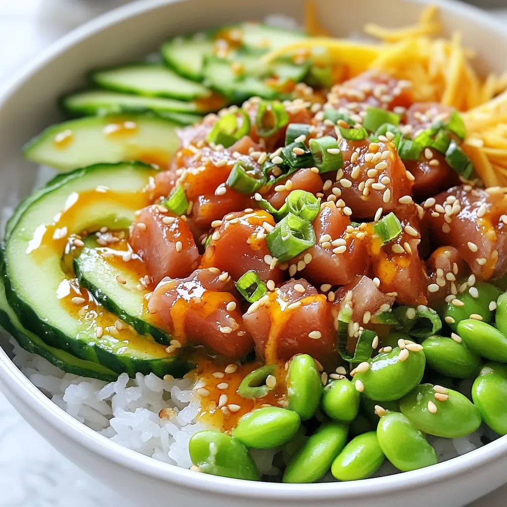 Adjusting the spice level is easy. If you prefer a milder flavor, reduce the sriracha in the tuna mixture. You can also substitute it with a less spicy sauce, like sweet chili sauce. For those who love heat, add more sriracha or include sliced jalapeños. You can also drizzle some chili oil on top before serving. This way, everyone can enjoy their bowl just the way they like it!