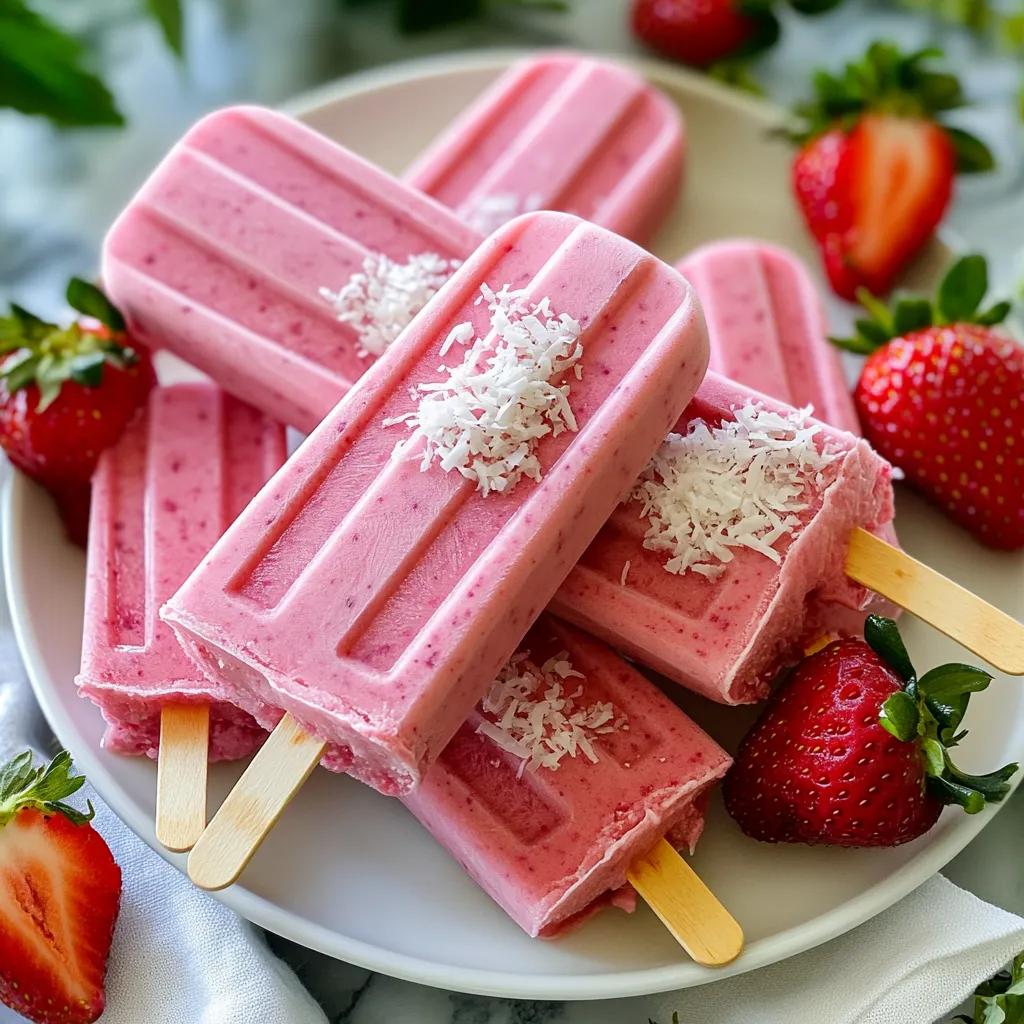 For these popsicles, use 2 cups of fresh strawberries. Make sure to hull and slice them first. Fresh berries give the best flavor and bright color. You can blend them until smooth or leave some chunks for texture. Next, you need 1 cup of coconut milk. I recommend using full-fat coconut milk for a creamy taste. This will make your popsicles rich and smooth. If you want a lighter version, you can use low-fat coconut milk. You will need 2 tablespoons of honey or maple syrup. This adds a nice sweetness. Feel free to adjust based on your taste. You can also add 1 teaspoon of vanilla extract for extra flavor. Lastly, add a pinch of sea salt to balance all the flavors. For some fun texture, include 1/2 cup of shredded coconut. You can choose sweetened or unsweetened, depending on your preference. {{ingredient_image_1}} Start by taking your fresh strawberries. Make sure they are hulled and sliced. Place them in your blender. Blend until smooth. If you like some bits of fruit, pulse the strawberries instead. This will give a nice texture to your popsicles. Next, grab a mixing bowl. Combine your blended strawberries with coconut milk. Add two tablespoons of honey or maple syrup. You can change this based on how sweet you want it. Don’t forget one teaspoon of vanilla extract. Toss in half a cup of shredded coconut and a pinch of sea salt. Mix everything well. Taste it! If it needs more sweetness, add more honey or maple syrup. Now, it’s time to pour the mixture into popsicle molds. Fill them about three-quarters full. This allows space for the pops to expand as they freeze. Carefully insert the popsicle sticks. Place the molds in the freezer for at least six hours. You want them completely solid. To remove the popsicles, run warm water over the molds. Do this for a few seconds. Then gently pull the popsicles out. Enjoy your tasty treat! To get that creamy texture, use full-fat coconut milk. This makes the popsicles rich and smooth. If you want some strawberry chunks, blend the strawberries but don’t overdo it. Pulse them just a few times for a nice mix of smooth and chunky. Taste your mixture before you freeze it. Start with two tablespoons of honey or maple syrup. If you like it sweeter, add more. Each sweetener can taste different, so adjust based on your preference. You can even add a pinch of sugar if needed. When it’s time to enjoy your popsicles, run warm water over the outside of the molds. This helps loosen them. Then, gently pull the popsicles out. If they stick, try twisting the mold a bit. This should help them slide right out. Enjoy your treat! Pro Tips Choose Ripe Strawberries: Select strawberries that are bright red and slightly firm for the best flavor. Overripe or mushy strawberries may result in a less desirable texture and taste. Adjust Sweetness to Taste: Depending on the natural sweetness of your strawberries, you might want to adjust the amount of honey or maple syrup. Always taste the mixture before pouring it into molds. Experiment with Coconut Milk: For a creamier texture, use full-fat coconut milk. If you prefer a lighter popsicle, you can substitute with light coconut milk or even almond milk for a different flavor profile. Use Warm Water for Easy Release: When removing the popsicles from molds, running warm water over the outside for a few seconds helps them release easily without breaking. {{image_2}} You can change the flavor by using other fruits. Try mango, pineapple, or blueberries. Each fruit brings its own taste. Mixing strawberries with bananas gives a creamy texture. You can blend any fruit you love. Just keep the same amount of fruit. This way, your popsicles stay balanced and tasty. If you want less sugar, use agave or stevia. You can also try coconut sugar for a caramel flavor. Honey works too, but remember to taste as you go. Each sweetener changes the flavor a bit. Adjust the amount based on your sweetness level. Find what makes your taste buds happy. Want to get creative? Add chocolate chips or nuts for crunch. Chopped almonds or hazelnuts add a nice bite. You can even swirl in some melted chocolate for a fun look. Just make sure to mix them in gently. This way, you get a surprise in every bite. Enjoy experimenting to make your popsicles unique! To keep your strawberry coconut popsicles fresh, store them in an airtight container. This helps prevent freezer burn. You can also wrap each popsicle in plastic wrap for extra protection. Make sure to label your container with the date. That way, you’ll know when you made them. For the best taste and texture, enjoy these popsicles within three months. After that, they may lose flavor and texture. If you freeze them longer, they can still be safe to eat, but they won’t taste as fresh. Watch for signs of spoilage. If your popsicles have ice crystals or an off smell, it’s time to toss them. A change in color can also mean they are past their prime. Always trust your senses to decide if they are good to eat. Yes, you can use frozen strawberries. They work well in this recipe. Just blend them straight from the freezer. You may need to adjust the mixing time since they are frozen. This can make your popsicles just as tasty. Frozen strawberries can also make your popsicles extra cold and refreshing. To make these popsicles dairy-free, simply use coconut milk. Coconut milk is a great base. It gives a creamy texture without any dairy. Make sure you buy the full-fat version for the best results. This keeps the popsicles rich and smooth. You can also replace the honey with maple syrup for a vegan option. These popsicles have many health benefits. Fresh strawberries are high in vitamin C and antioxidants. They help boost your immune system and support heart health. Coconut milk provides healthy fats. These fats can help you feel full longer. Shredded coconut adds fiber to your diet. This can aid digestion and keep your tummy happy. Honey or maple syrup adds natural sweetness without added chemicals. This blog cov