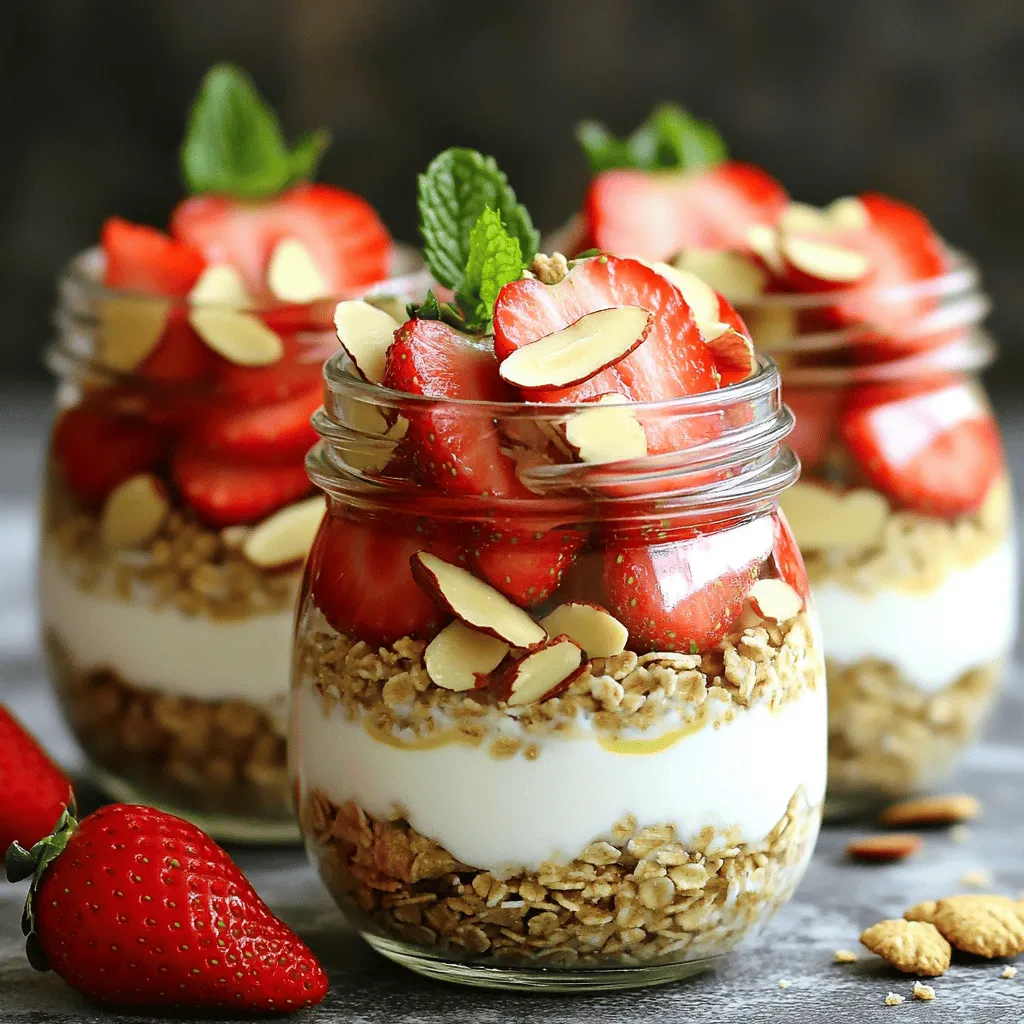 To make tasty Strawberry Shortcake Overnight Oats, you need simple items. Here’s what you will use: - 1 cup rolled oats - 1 cup almond milk (or milk of choice) - 1 cup Greek yogurt (vanilla flavored) - 1 tablespoon maple syrup (or honey) - 1 teaspoon vanilla extract - 1 cup fresh strawberries, hulled and sliced - 2 tablespoons almond slices (or crushed graham crackers for a shortcake crunch) - Fresh mint leaves for garnish (optional) These ingredients work together to create a creamy and sweet breakfast. The oats soak up the milk and yogurt, making them soft and delicious. You can easily swap some ingredients if you need to. Here are some ideas: - Use any milk you like, such as soy or oat milk. - If you want a non-dairy option, try coconut yogurt instead of Greek yogurt. - Maple syrup can be replaced with agave syrup or any sweetener you prefer. - Use frozen strawberries if fresh ones are not available. Just thaw them before use. These swaps keep the dish tasty while fitting your needs. Adding garnishes makes your oats look pretty and adds flavor. Here are some fun options: - Sprinkle almond slices or crushed graham crackers on top for a crunch. - Add a dollop of whipped cream for extra sweetness. - Fresh mint leaves give a nice touch and fresh flavor. Feel free to get creative with your garnishes. They can make breakfast feel special! Start by gathering your ingredients. You need rolled oats, almond milk, Greek yogurt, maple syrup, and vanilla extract. In a medium bowl, mix the rolled oats and almond milk. Then, add the Greek yogurt, maple syrup, and vanilla extract. Stir until everything is well combined. This mix should be smooth and creamy. Next, gently fold in half of the sliced strawberries. You will use the rest for topping later. Once the mixture is ready, divide it into two jars or containers. Make sure they have lids. Seal the jars tightly to keep the oats fresh. Now, place the jars in the refrigerator. Let them chill overnight. If you are short on time, four hours will work too. This soaking process helps the oats absorb the liquid and become soft. In the morning, take the jars from the fridge. Give the oats a good stir. If the mixture seems thick, add a bit more milk to loosen it up. Now it’s time to add the toppings. Place the remaining sliced strawberries on top of each jar. For a nice crunch, sprinkle almond slices or crushed graham crackers. If you like, add fresh mint leaves for a pop of color and flavor. Enjoy your delicious strawberry shortcake overnight oats! To get the best texture, use rolled oats. They soak up the liquid well. You want your oats soft but not mushy. Let them sit in the fridge for at least four hours. Overnight is even better. If your oats feel too thick in the morning, add a splash of milk. This will bring them back to life and make them creamy. To boost the flavor, try adding spices like cinnamon or nutmeg. A pinch can make a big difference. You can also mix in a spoonful of almond butter for a nutty kick. For a sweeter taste, add more maple syrup or honey. Fresh herbs like mint can give a fresh twist. You can change the flavor each time you make it! If you're looking for a low-calorie option, use low-fat Greek yogurt or skip it altogether. You can replace almond milk with oat milk for a vegan version. For a lower sugar option, use a sugar substitute or skip the sweetener. You can also load your oats with chia seeds for added fiber. This keeps your breakfast healthy and filling. {{image_2}} You can switch up the fruit in your overnight oats. Try using blueberries or raspberries. You might even enjoy adding peaches when they are in season. Each fruit brings its unique taste. Mixing different fruits adds color and flavor. You can create your signature blend of fruits. Greek yogurt is great, but you can mix it up. Try strawberry or coconut yogurt for a different twist. You can use dairy-free yogurts like almond or soy. Each type brings a new flavor and texture. It adds fun to your oats and keeps breakfast exciting. Want to boost nutrition? Add chia seeds or protein powder. Chia seeds give a nice crunch and healthy fats. Protein powder can help keep you full longer. You can also mix in nuts or seeds for extra texture. These add-ins give your oats a healthy kick. You can store your Strawberry Shortcake Overnight Oats in the fridge. Use jars or containers with lids. This keeps them fresh. Make sure to seal them tightly. You can layer the oats with toppings in separate jars. This keeps everything crisp. These oats last about three to five days in the fridge. For best flavor, eat them within the first two days. Check for any changes in smell or texture. If they seem off, it's best to toss them. Always use clean utensils to avoid contamination. You don’t need to heat overnight oats. They taste great cold. If you prefer them warm, you can microwave them. Add a splash of milk to help them heat evenly. Warm them for about 30 seconds, then stir. Enjoy them hot if that’s your style! Yes, you can make Strawberry Shortcake Overnight Oats ahead of time. This recipe is perfect for meal prep. You can prepare it the night before or up to three days in advance. Just store the oats in the fridge in sealed jars. That way, you have a tasty breakfast ready to go! If you do not have almond milk, you can use other milk types. Regular cow's milk works great. You can also try oat milk, coconut milk, or soy milk. Each option will change the flavor slightly. Choose the one you like best! To make this recipe dairy-free, use dairy-free yogurt. Look for coconut or soy yogurt. For gluten-free oats, ensure you buy certified gluten-free rolled oats. This way, you can enjoy the dish without worry. You can still have a delicious treat! In this blog post, we explored how to make tasty strawberry shortcake overnight oats. We covered key ingredients, substitutions, and optional garnishes. You learned the steps to prepare, refrigerate, and serve your oats. We also shared tips for te