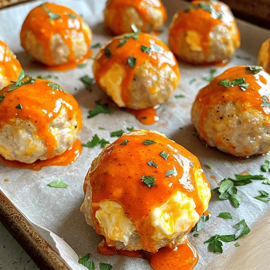 Ground chicken is the star of this dish. It gives the meatballs a light texture and absorbs flavors well. Cream cheese adds a rich, creamy center. Buffalo sauce brings the heat and tang you expect from this dish.