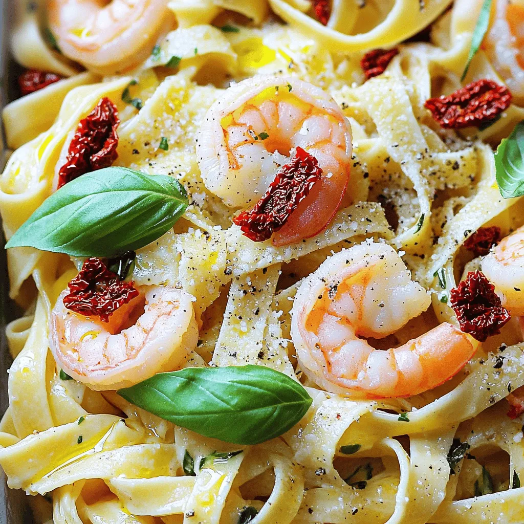 Each ingredient plays a key role in the dish’s flavor. The shrimp gives a juicy and tender bite, while the sun-dried tomatoes add a rich, tangy taste. Garlic brings depth, and heavy cream creates a luscious sauce. Parmesan cheese adds a savory kick, and olive oil enhances the overall richness. The red pepper flakes can spice things up, so add them if you like heat. Finally, fresh basil gives a lovely touch of freshness and color.