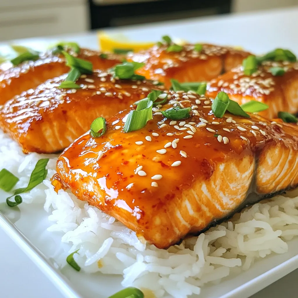 A delicious salmon dish glazed with sweet chili sauce, perfect for a quick and flavorful meal.