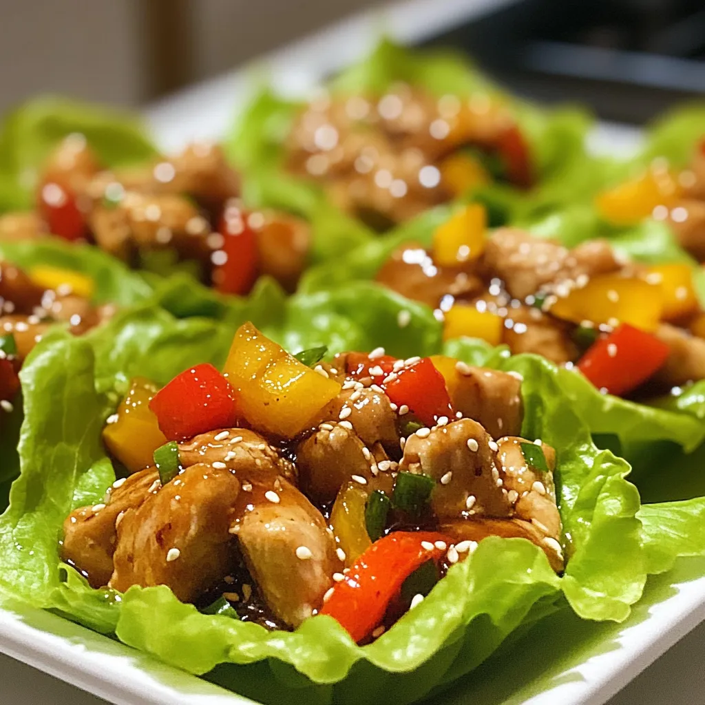 Finally, remove from heat and stir in the chopped green onions. This adds a fresh taste. You’re ready to serve! Scoop the chicken mix onto a butter lettuce leaf, wrap it up, and enjoy the burst of flavors.