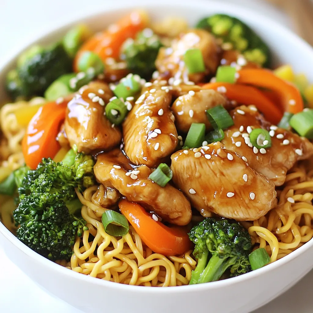 A vibrant and flavorful dish that combines tender chicken, fresh veggies, and the rich taste of teriyaki sauce in a quick and comforting meal.