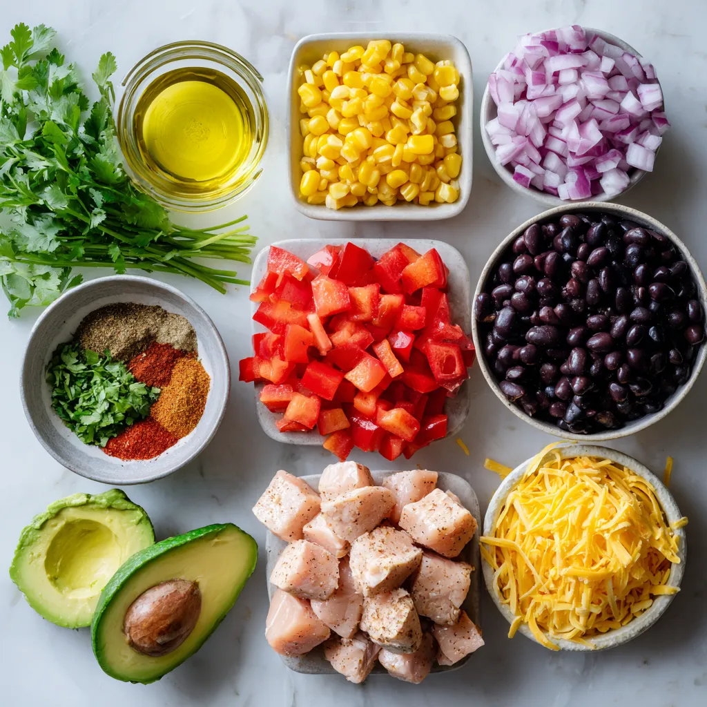 These ingredients create a hearty base for your skillet. The chicken adds protein, while the beans and corn bring fiber and sweetness. The bell peppers and onion add color and crunch.
