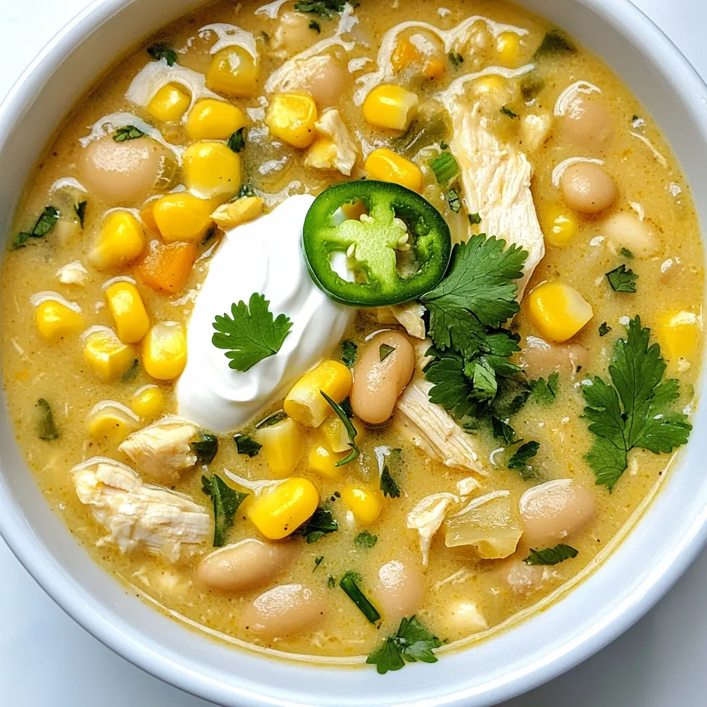 A rich and creamy chili made with chicken, white beans, and spices, perfect for a cozy meal.